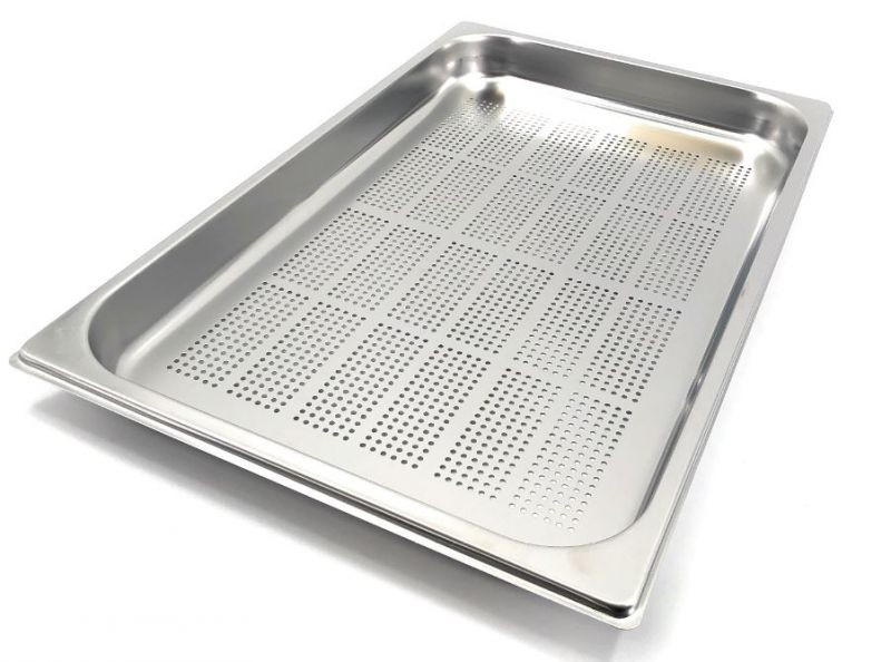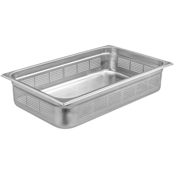GASTRONORM 1/1 h100 forato. Bacinella Gastronorm in acciaio inox AISI 304 GN 1/1. Dim. 530×325 altezza 100 mm. Capacità 13,3 litri. Made in Italy.