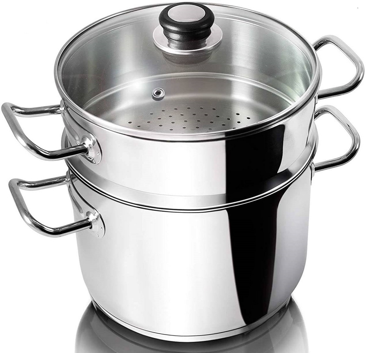 Vaporiera Daily Plus Ø24Cm H.33Cm 8Lt In Acciaio Inox 18/10 Con Triplo Fondo Ad Induzione E Con 1 Cestello Sovrapponibile Con Il Fondo Forato, Per Consentire Il Passaggio Del Vapore, Coperchio In Vetro Con Valvola Di Sfiato Vapore