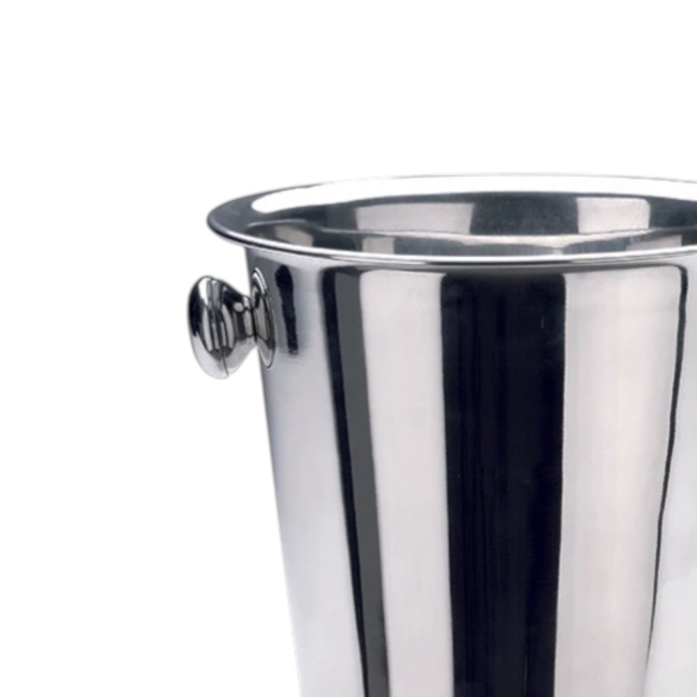 Secchiello per champagne in acciaio inox dalla forma classica, pensato per mantenere al fresco bottiglie di champagne, vino o spumante. Il modello è caratterizzato da una struttura robusta in acciaio inossidabile con pomoli laterali per una presa sicura e comoda durante il trasporto o il servizio. Il design semplice e funzionale lo rende adatto sia all’uso quotidiano che per occasioni, cene o aperitivi raffinati.