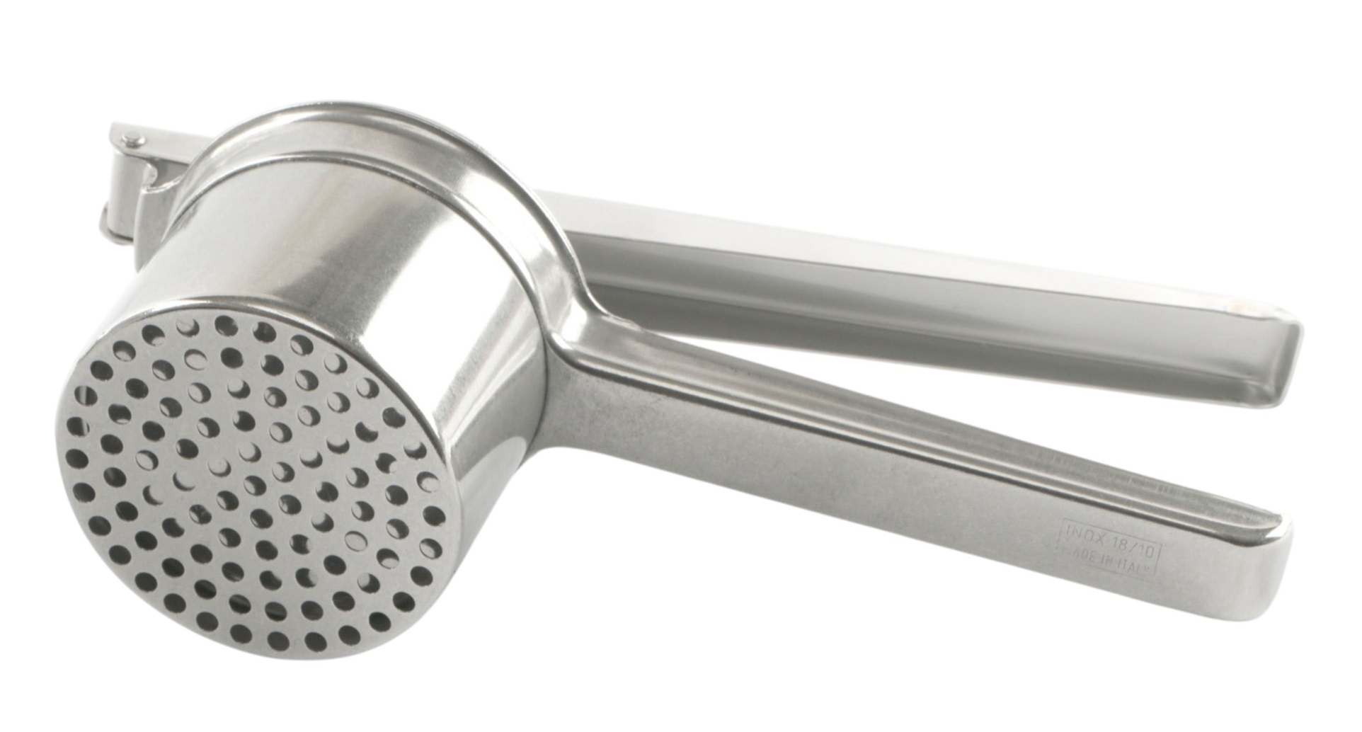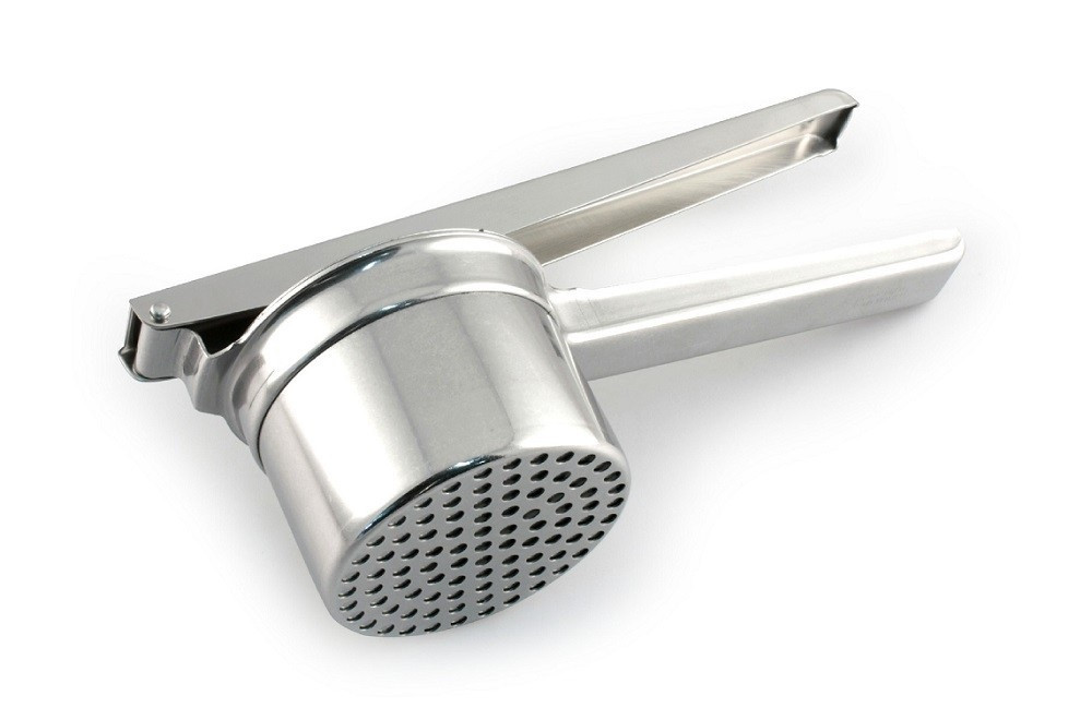 Schiacciapassatelli inox 18/10 l.cm 26,5 h.cm 6,7 diam. 12 cm 8,5 fori mm 5 (pesante)