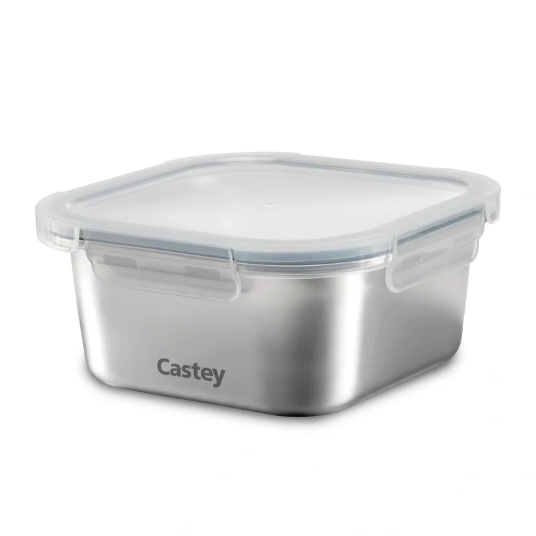 Castey, contenitore quadrato 600 ml per microonde, con coperchio ermetico, acciaio inox