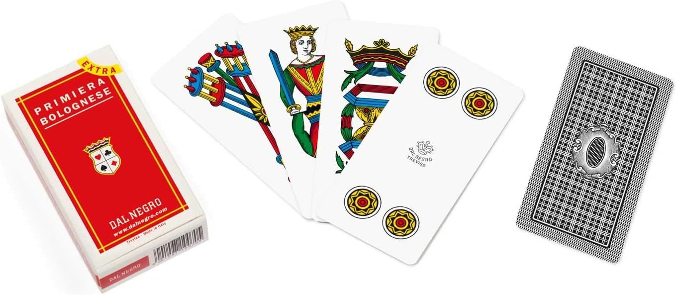Carte Da Gioco Regionali Carte da gioco Primiera Bolognese Dal Negro realizzate in cartoncino. 40 carte mm 51*103, astuccio rosso.