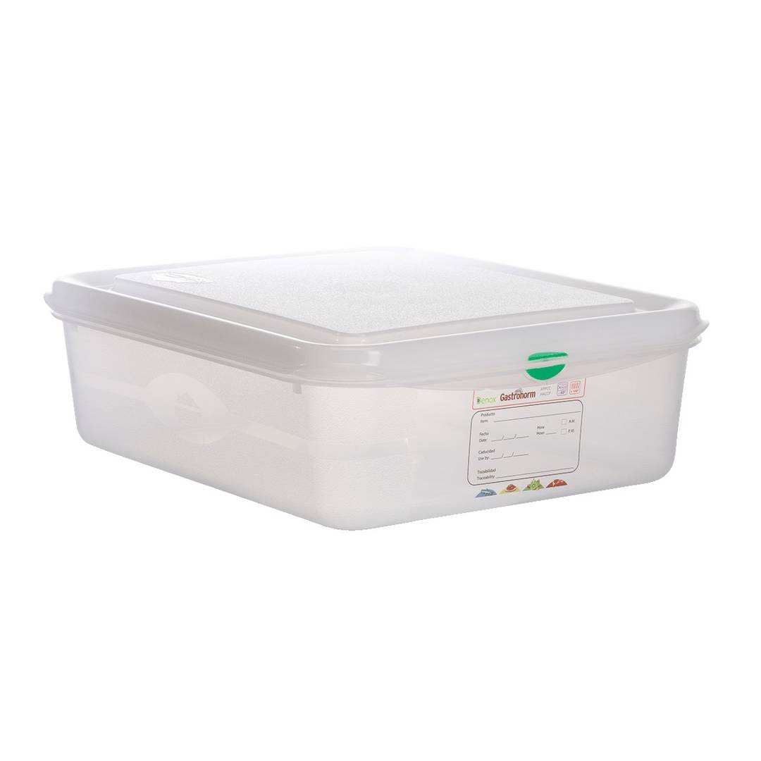 Ermetico Con Coperchio A Doppia Chiusura E Facile Apertura Ad Angolo. Senza Bisfenolo. La Qualità Del Cibo Secondo Gli Standard Internazionali Contrastava Con I Test Di Migrazione. Etichetta Di Tracciabilità Integrata. Clip A Colori Per L’Identificazione Degli Alimenti. Testato Per Robustezza E Fatica Dimensioni (Mm) : 325 X 265 X 100Capacità : 6,5L. -40°+100° Certificato Haccp