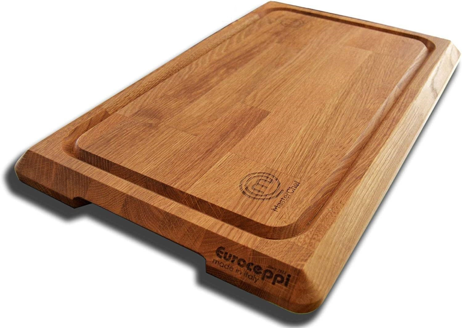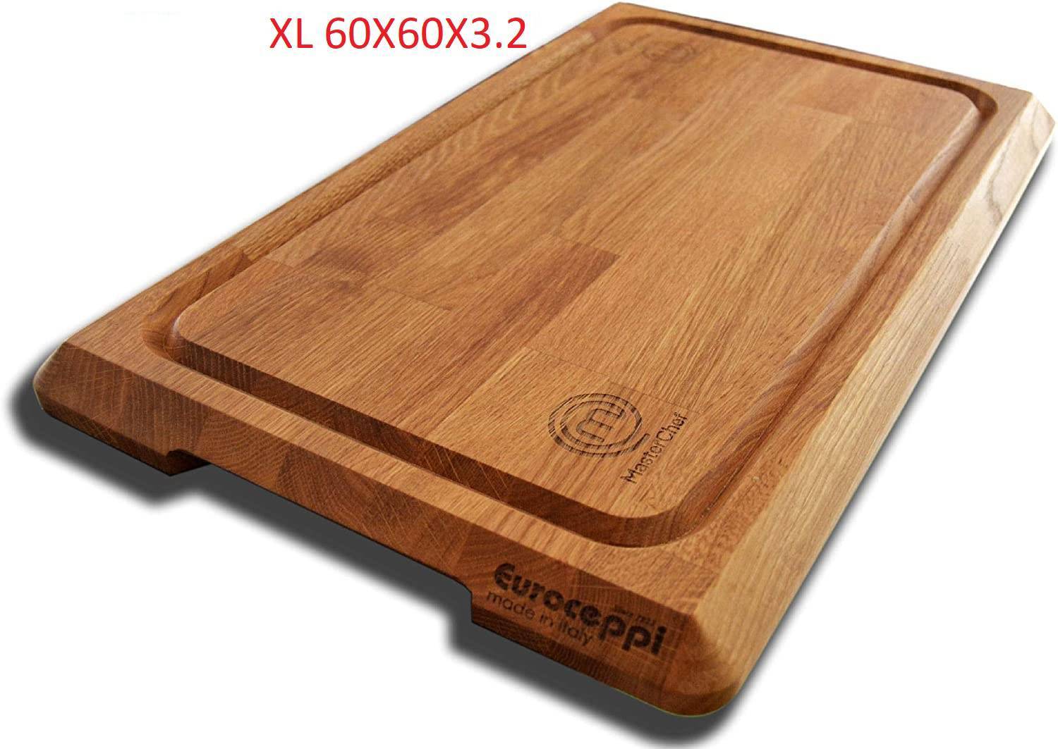 Tagliere Di Alta Qualità, Provvisto Di Canalina E Maniglie Laterali Per Una Facile Presa Finitura Oliata Questo Tagliere È Stato Al Fianco Dei Concorrenti Della Trasmissione Italiana Masterchef8 E Masterchef Allstar. Manuale Per Una Corretta Manutenzione Dei Piani Di Lavoro In Legno Ad Uso Professionale Manutenzione Giornaliera Per La Quotidiana Pulizia È Necessario Che A Fine Giornata, Dopo Il Suo Abituale Utilizzo, Il Tagliere O Ceppo In Legno Venga: • Grattato Con Apposito Raschietto O Pulito Con Adeguata Spazzola In Assenza, Può Essere Grattato Con Una Lama Di Coltello. • Successivamente Pulito Con Panno Umido E Ricoperto Per Tutta La Notte Di Sale Grosso Per Favorirne L’Assorbimento Di Eventuale Umidità. Questo Processo Fa Indurire Il Legno E Genera La Sterilizzazione Naturale. Consigli Utili • Per Ottenere Un Consumo Omogeneo Della Superficie Dei Piani Di Lavoro, Si Consiglia Di Ruotare Il Tagliere/Ceppo. In Questo Modo La Piallatura Sarà Più Omogenea, E Verrà Rettificato Meno Materiale. • A Seconda Del Suo Utilizzo, E Quindi A Seconda Dei Intagli Presenti Sui Piani Di Lavoro, Si Consiglia Di Rettificare/Piallare I Taglieri O Ceppi Con Cadenza Periodica. Attenzioni Particolari : Il Legno È Un Materiale Suscettibile Di Subire Variazioni In Seguito Alle Condizioni Ambientali, Pertanto Il Suo Posizionamento Deve Essere Attentamente Studiato Sin Dal Suo Primo Utilizzo. Inoltre: • Non Deve Essere Mai Lavato Con Acqua, Mai Bagnato, Né Conservato In Ambienti Umidi Per Non Subire Deformazioni. Per Questo Motivo Si Consiglia Di Posizionarlo Lontano Da Fonti Di Umidità Quali Banchi Refrigeranti, Frigoriferi, O Fonti Di Calore Quali Forni, Fiamme O Altro. • Nel Caso In Cui Fosse Necessariamente Utilizzato A Contatto Con Tali Fonti, Si Consiglia Di Applicare Appositi Piedini Al Fine Di Creare Una Camera D‘Aria Sottostante Che Favorisca L’Asciugatura De Legno. Prodotto Nuovo, Privo Del Cartone Originale Essendo Delle Misure Extra Grandi