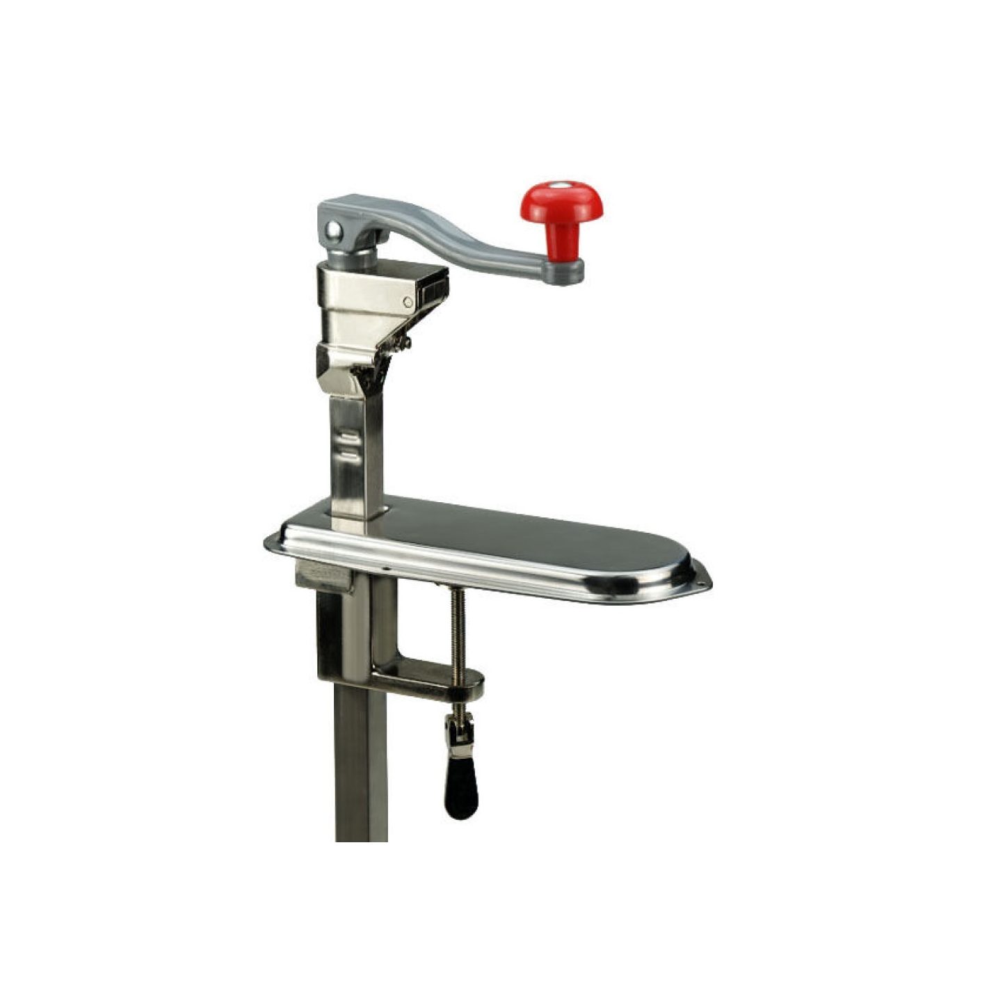 L’Apriscatole È Un Sistema Costituito Da Una Colonna Di Sostegno, Piastra Di Fissaggio Al Piano Di Lavoro In Acciaio Inox 18/10, Morsetto Per Fissaggio Al Banco Di Lavoro. La Particolare Costruzione Dell’Apparecchio Ne Consente L’Uso Per Scatole Di Diversi Formati E Di Dimensioni. Il Taglio Viene Effettuato Lungo L’Aggraffatura In Modo Da Permettere Lo Svuotamento Della Scatola Senza Perdita Di Prodotto. Non Lascia Pericolose Bave Taglienti Consente Di Regolare L’Altezza Del Taglio Taglia Perfettamente Scatole Rotonde 40Cm