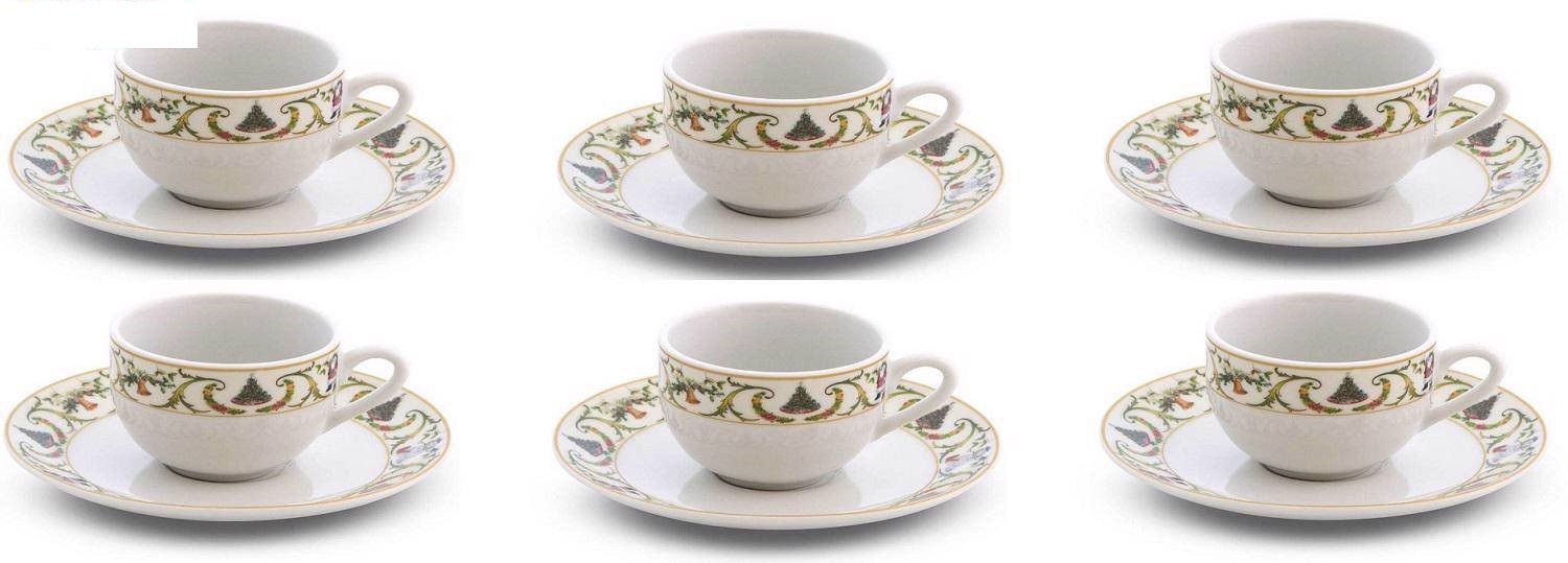 Fade Christmas white natale, set 6 tazze c/piattino caffè in finissima porcellana