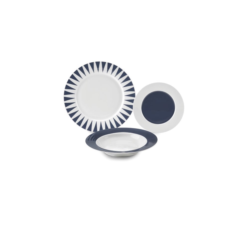 Un servizio piatti composto da 18 pezzi in porcellana decorata con motivo geometrico e tonalità grigio, pensato per 6 persone. Caratteristiche principali Colore / stile: grigio con decori geometrici assortiti Adatto per: uso quotidiano e occasioni informali Design: moderno e coordinato Il set comprende: 6 piatti piani (circa Ø 26–27 cm) 6 piatti fondi (circa Ø 20–23 cm) 6 piatti dessert / frutta (circa Ø 19–20 cm) Stile e utilizzo Questo tipo di servizio con decoro geometrico grigio porta un tocco elegante e moderno alla tavola. I set in porcellana come questo sono robusti e adatti sia per pasti quotidiani sia per cene con ospiti.