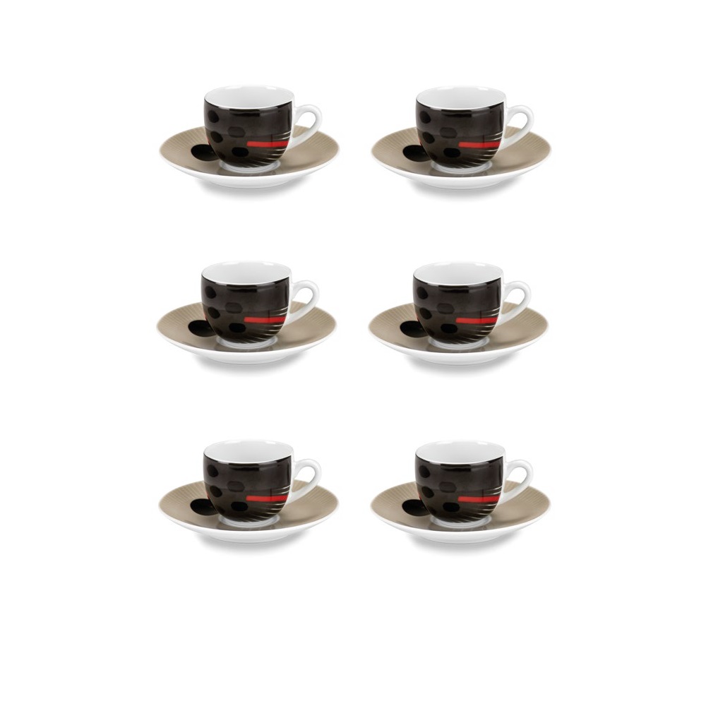 Fade Japan, set 6 tazze caffè con piattino, colori assortiti, in porcellana decorata