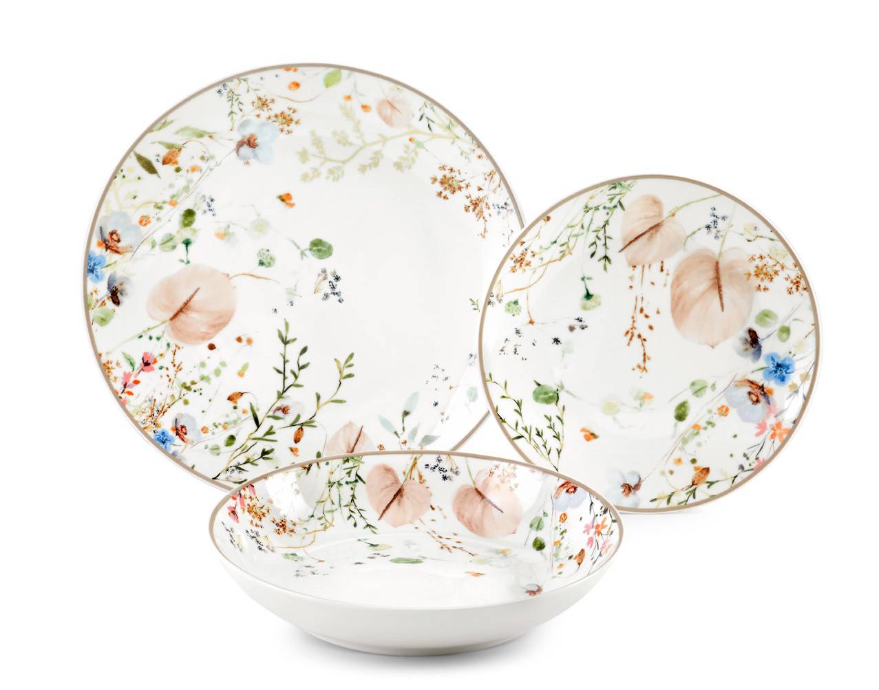 Fade jasmine, servizio piatti 18 pezzi in fine porcellana, qualità extra
