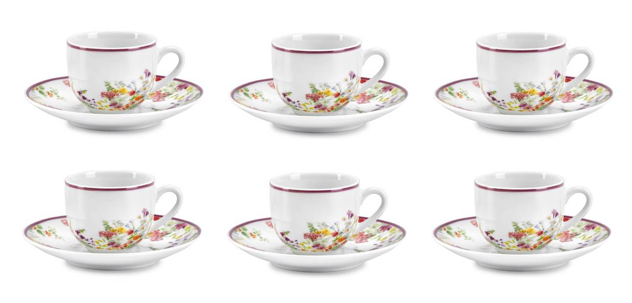 Fade lush, set 6 tazze caffè 100 ml con piattino in fine porcellana