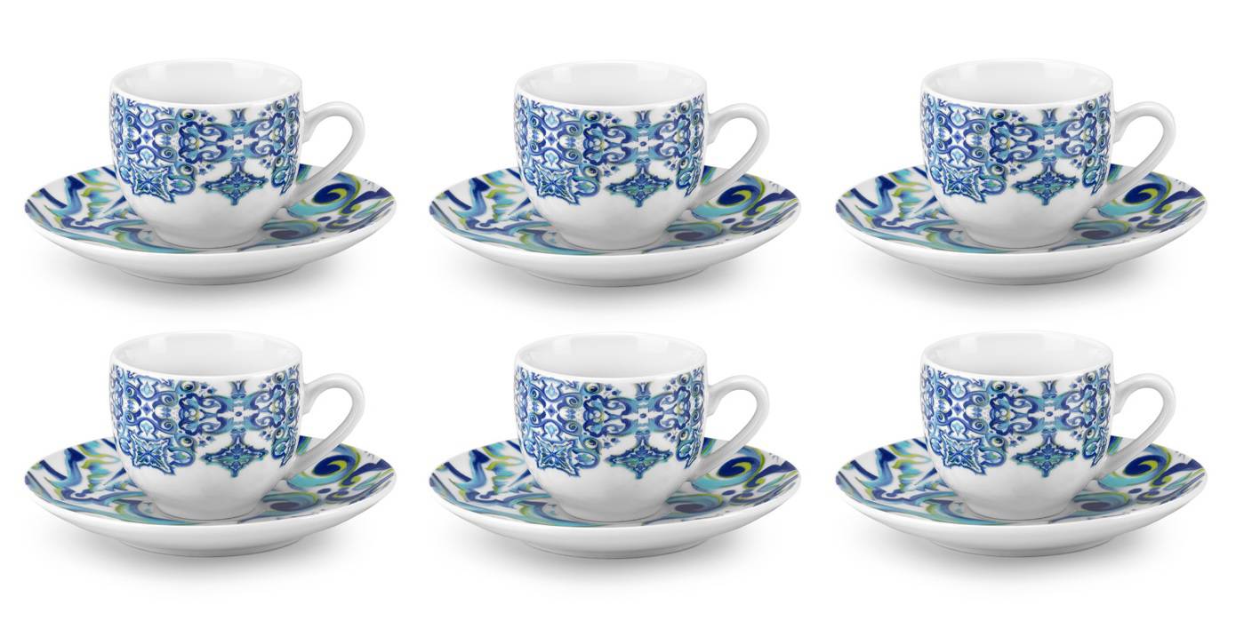 Tazze Da Caffè 100 Ml Con Piatto, Realizzato In Porcellana Dallo Stile Retrò, Colori Vivi E Lucenti