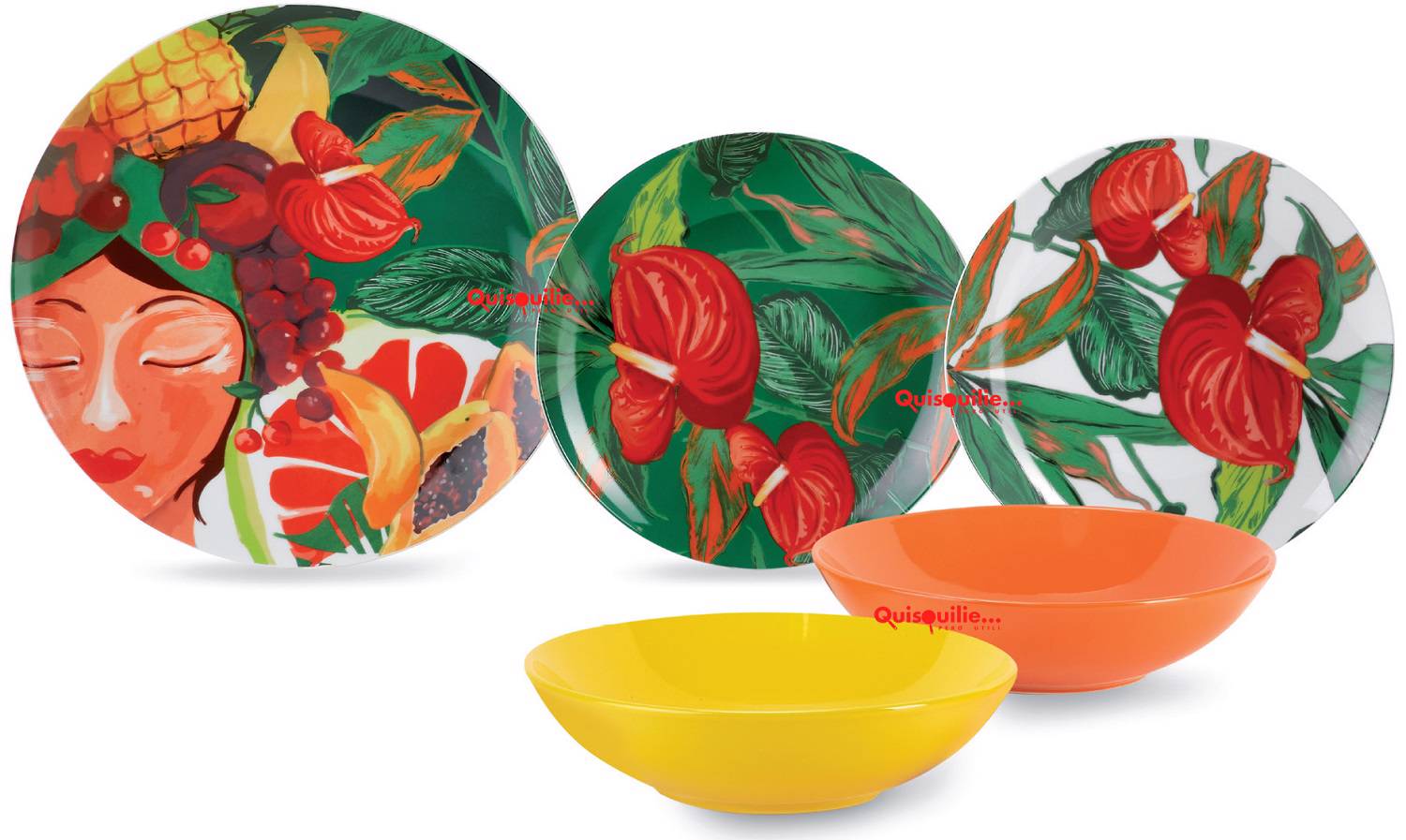 Set Composto Da: – N.6 Piatti Piano Cm. Ø27 – N.6 Piatti Fondo Cm. Ø20Xh4,5 – N.6 Piatti Frutta Cm. Ø20. La Decorazione Di Questa Linea È Applicata Manualmente, Questo La Rende Ancora Più Particolare. Insalatiera Boho, Realizzato In Porcellana Dallo Stile Retrò, Colori Vivi E Lucenti