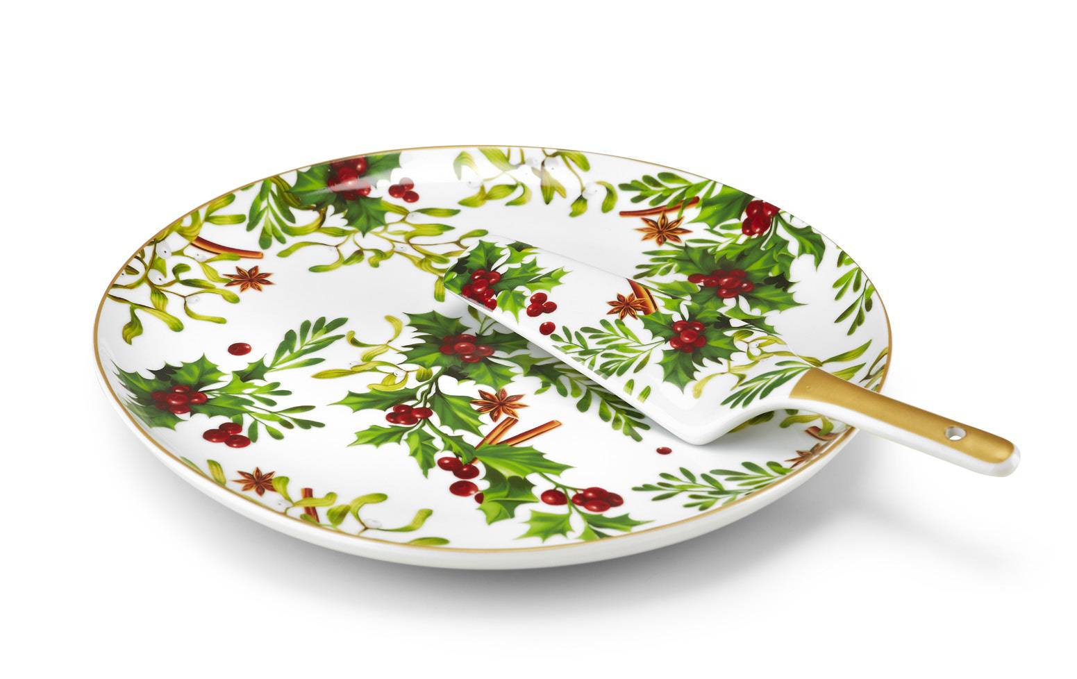 Redberry Piatto Panettone 30 Cm Con Paletta In Fine Porcellana