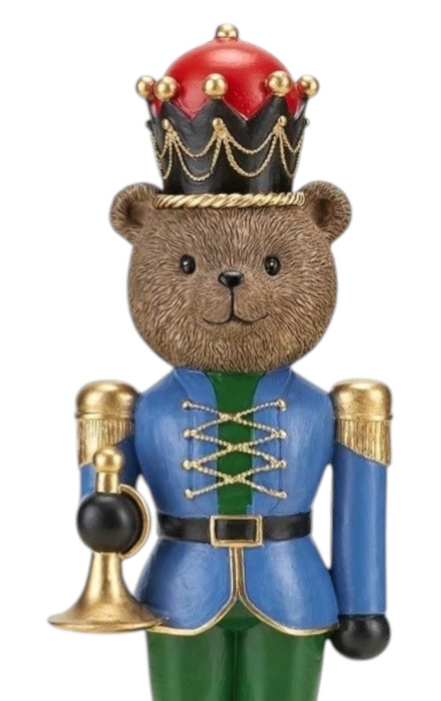 Fade Teddy Natale blu, orsetto in resina decorata cm 32, decorato a mano