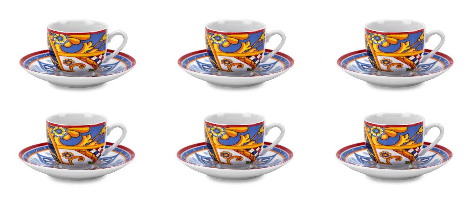 Set 6 Tazze C/Piattino Caffè In Finissima Porcellana