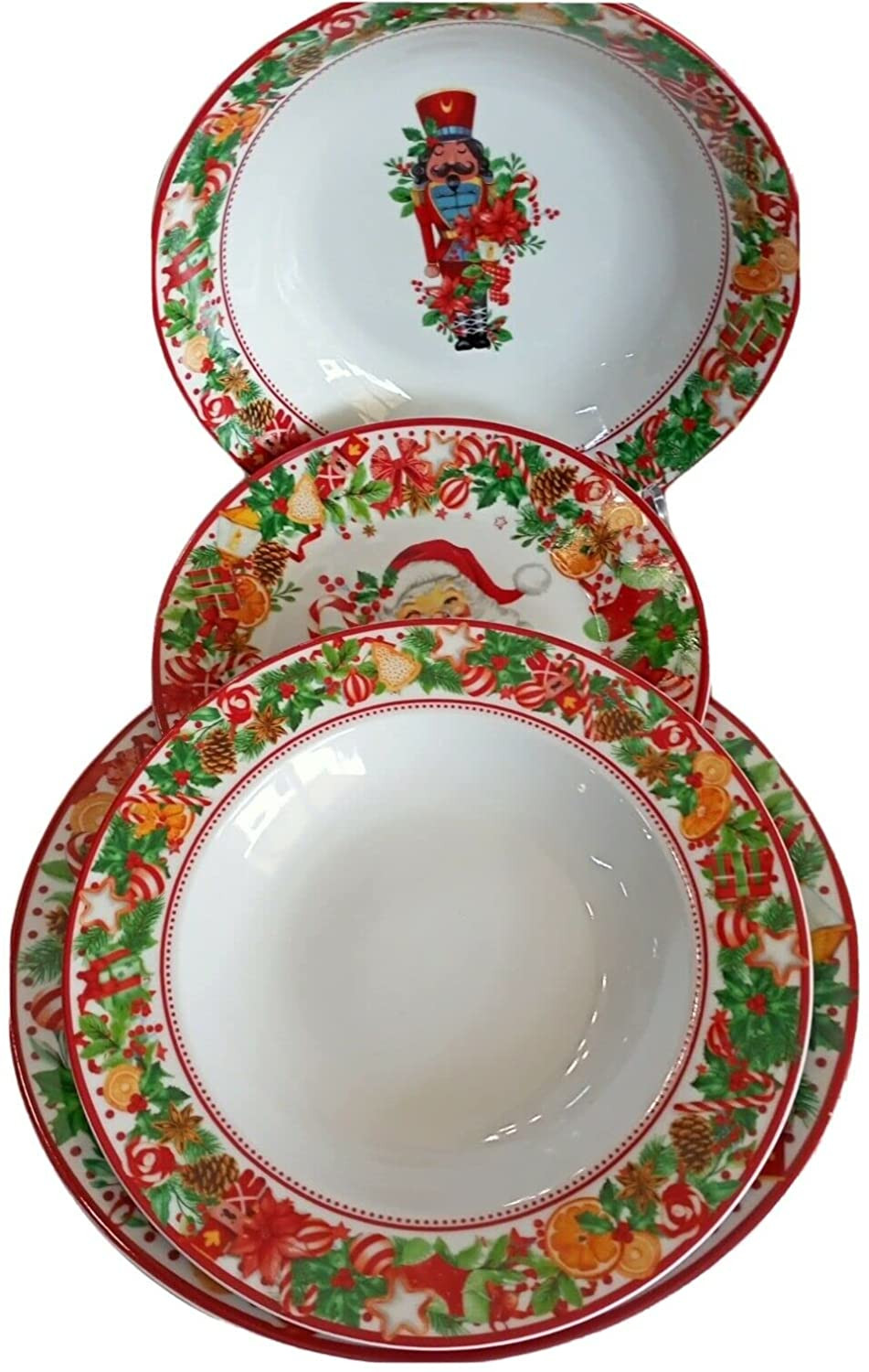 Servizio Di Natale 19 Pezzi In Porcellana Colorata. Il Servizio Comprende: 6 Piatti Piani 6 Piatti Fondi 6 Piatti Dessert 1 Insalatiera Frutta: 20,5Cm Piano: 27Cm Fondo: 21,5Cm