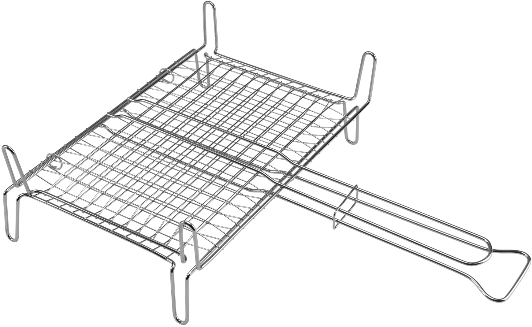 griglia per BBQ con manico e piedi in ferro cromato In filo di ferro cromato Cromatura TRIMAC III (processo sicuro e tutela dell’ambiente) Il prodotto rispetta la normativa Europea a tutela del consumatore come da direttiva: 76/769 CEE e aggiornata dalla 2002/61/CEE e 94/27/CEE