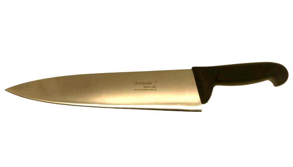 E’ Un Coltello Idele Per La Gran Parte Delle Preparazioni In Cucina, Ridurre E Tritare Carne,Verdure,Formaggi Ed Altro Senza Problemi E In Tutte Le Situazioni In Cui Non È Essenziale Avere Un Coltello Dedicato. E’ Il Compagno Perfetto Per Qualsiasi Cuoco, Sia Per Uno Chef Professionista Che Per Uno Chef Provetto Ed Amatoriale. Dimensioni Lama : Cm 35 Manico Cm 15 Marchio Sullla Lama: Quisquilie Però Utili