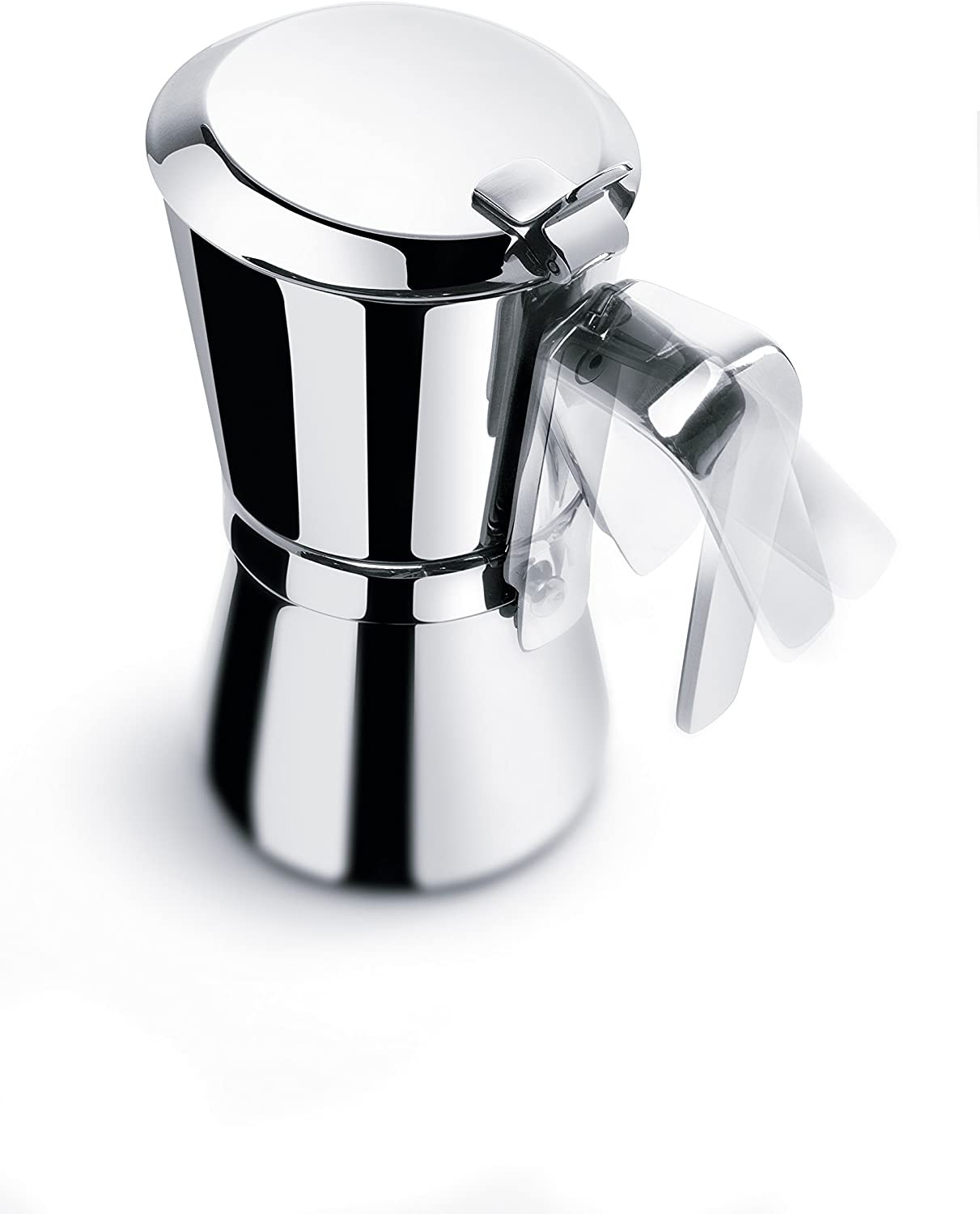 Caffettiera, Realizzata Interamente In Acciaio Inox, Lucidata A Specchio. Caldaia Con Chiusura A Scatto, Con Brevetto Giannini. Manico E Pomolo In Infusione Di Acciaio Per Una Presa Solida E Confortevole, Che Copre La Meccanica Della Chiusura. Coperchio Salvagoccia Grazie All’Appoggio Ripiegato All’Interno. Adatta Anche Su Piastra A Induzione. (Solo Da 3 e 6 Tazze)