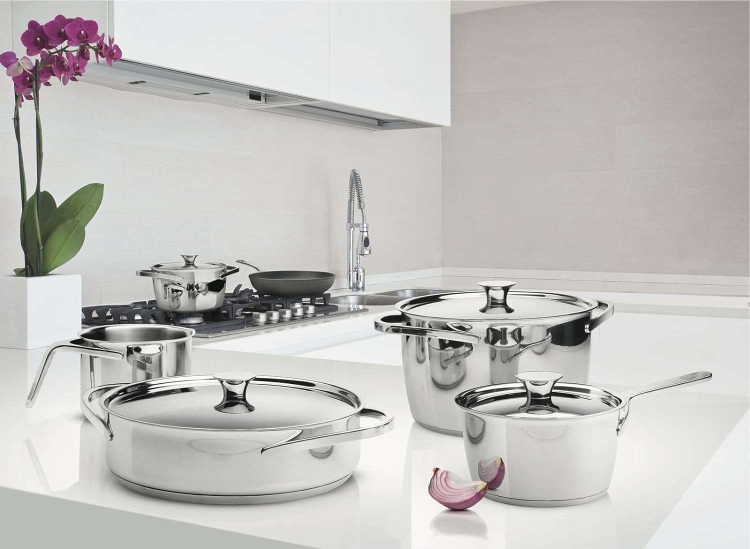 Kuoka Pentola Acciaio Inox Cm.20 H14 Lt.3,7 Casseruola In Acciaio Inox Lucidato A Specchio. Fondo In Triplo Strato Con Acciaio E Alluminio, Dallo Spessore Di 3 Mm, Per Una Rapida Diffusione Del Calore. Manici In Fusione D’Acciaio, Adatti Per Il Forno, Con Bordo Dal Profilo Arrotondato Antigoccia. Pentola Adatta Ad Ogni Tipo Di Cottura, Gas, Forno, Su Piastra Elettrica E Radiante, Su Vetro-Ceramica, Su Induzione. Garantita A Vita, Lavabile In Lavastoviglie, Perfettamente Impilabile Nel Proprio Set.