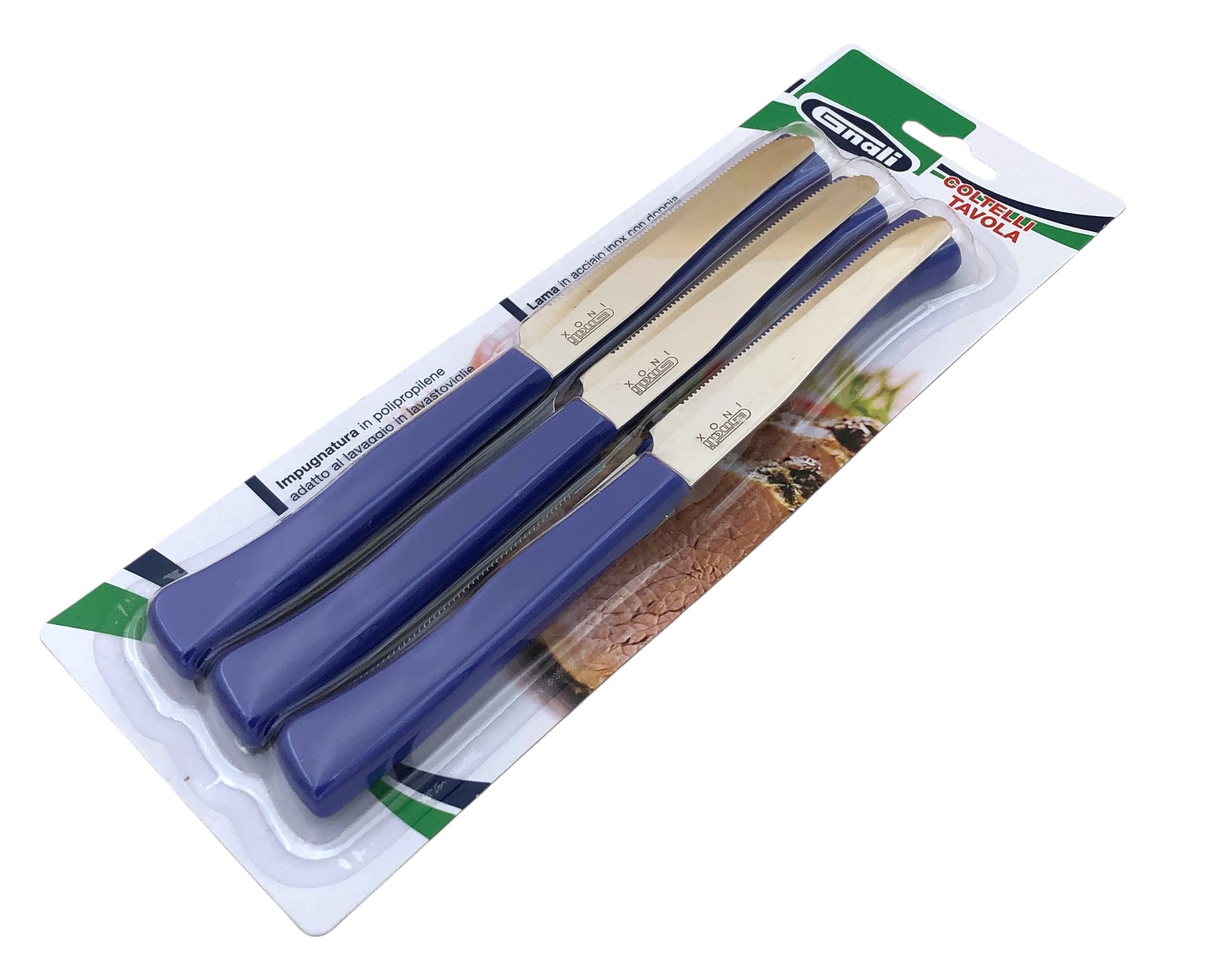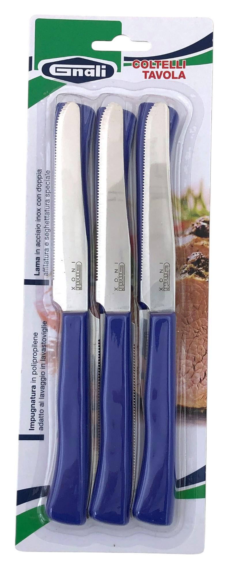 Gnali set 6 coltelli multiuso utili per tagliare con precisione e senza sforzo carne, pesce, pane e verdure. Possiedono un manico realizzato in plastica con un’impugnatura ergonomica che agevola la presa e consente tagli con maggior precisione. La lama seghettata è al 100 % acciaio inox, materiale che non si corrode a contatto con i cibi e non si deforma sotto pressione. Dotati di dentatura affilata per affettare velocemente anche i cibi più consistenti e garantire tagli omogenei.
