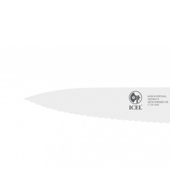 Coltello con lama appuntita e seghettata, ideale per tagliare e decorare frutta e verdura. La lama seghettata consente di tagliare la buccia dura dei pomodori senza schiacciarli, garantendo un taglio netto. Lama in acciaio inossidabile di alta qualità, al cromo-molibdeno-vanadio (X50CrMoV15), con codolo a metà codolo che penetra nell’impugnatura per circa metà. Temprata per raggiungere una durezza di 57 ± 2 HRC. Affilata a mano da esperti per ottenere un angolo di affilatura perfetto e garantire una potenza di taglio duratura. Il manico è stampato a iniezione in Proflex, un materiale duro e resistente, in grado di resistere ai danni derivanti dall’uso quotidiano. L’assenza di fessure in cui possano accumularsi residui di cibo garantisce sicurezza e una pulizia facile ed efficace. Garanzia illimitata contro qualsiasi difetto di fabbricazione o di materiale Prodotto in Portogallo Horeca Prime – Una linea di coltelli pensata per soddisfare le esigenze del settore professionale. Il manico presenta un design ergonomico, che ne aumenta il comfort durante l’utilizzo. La sua texture offre una presa migliore, anche con le mani bagnate, garantendo maggiore sicurezza ai professionisti. Grazie alla sua semplicità e leggerezza, la linea si distingue per essere facile da affilare, lavare e maneggiare.