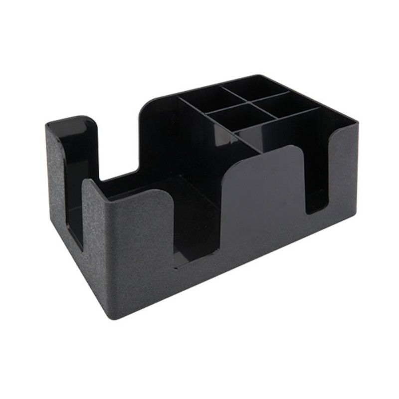 Portaoggetti con portatovaglioli da bar in ABS della linea Mixage con misure 24×14,5 cm ed altezza 10,5 cm. Pratico porta tovagliolini e cannucce da sistemare sul banco bar durante il lavoro. La linea Mixage è pensata appositamente per i professionisti del settore e comprende l’attrezzatura completa per realizzare cocktail.