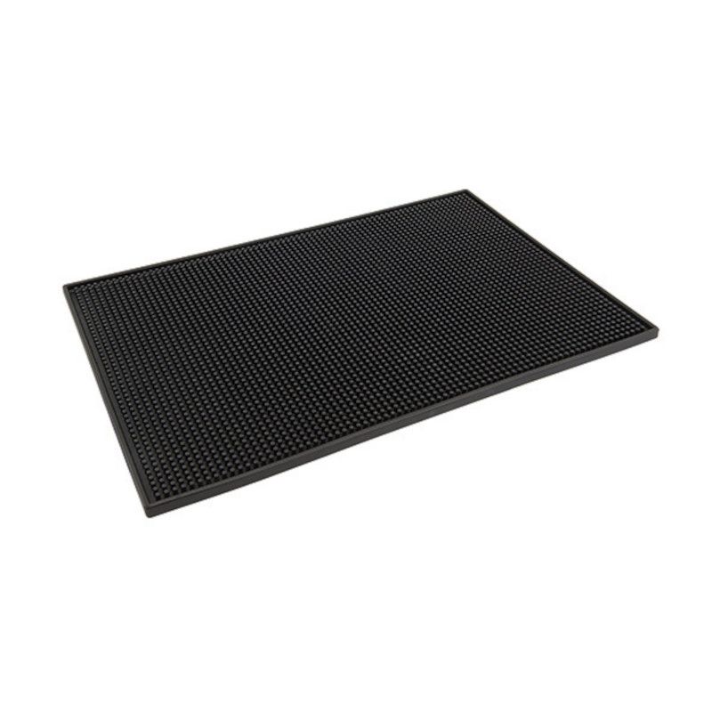 Tappetino da bar in gomma nero della linea Mixage con misure 45×30 cm. Pratico tappeto da bar grande rettangolare utilizzabile sia come classico tappeto da bar man, sia come tappeto di appoggio sul piano di lavoro. La sua forma permette una maggiore capienza di oggetti e una maggiore trattenuta di liquidi al suo interno. La linea Mixage è pensata appositamente per i professionisti del settore e comprende l’attrezzatura completa per realizzare cocktail.