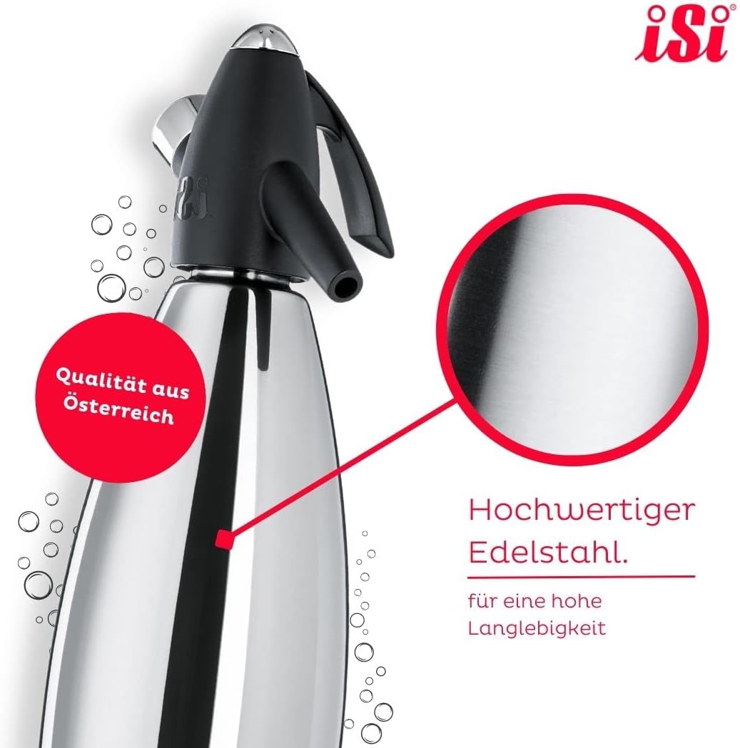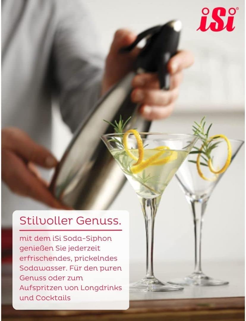 Il Sifone Seltz Isi In Acciaio Da 1 Lt È Indispensabile Per Frizzare Drink In Modo Istantaneo, Dosando A Piacimento Vostro O Del Vostro Ospite La Quantità Di Gas Da Utilizzare. Utilizzo Il Sifone Del Seltz Isi In Acciaio È Semplice Da Smontare E Pulire, Ma Soprattutto Da Utilizzare, In Modo Da Facilitare E Velocizzare Il Vostro Lavoro. Caratteristiche Isi Non Sbaglia, Garantendovi Un Prodotto Dalle Grandi Qualità E Gli Innumerevoli Pregi. A Partire Dal Corpo Della Bottiglia Seltz, O Seltz Bottiglia, Realizzato In Acciaio Inox Di Alta Qualità. Il Volume Arriva Fino A 0,75 L E Il Sifone Acciaio È Dotato Di Un Tubo Di Misura Per La Protezione Contro L’Eccessivo Riempimento Dello Stesso. Il Prodotto In Questione Può Inoltre Contare Su Una Valvola Di Sovrapressione Che Garantisce Comfort E Sicurezza Ai Massimi Livelli Ed È Fornito Di Un Portacapsule Ergonomico, Dotato Di Un’Impugnatura Antiscivolo In Silicone. Design E Funzionamento Sifone Con Il Sifone Seltz Isi In Acciaio Lt 1, Il Design Contemporaneo Incontra La Tecnologia Moderna. Grazie Alla Bottiglia Da Seltz Potete Preparare Fino A 0,75 L Di Acqua Gassata, Dissetata E Ultra-Effervescente, Ma Anche Bibite, L’Acqua Di Seltz Pura E Cocktail Tanto Frizzanti Quanto Piacevolmente Dissetanti. Non Dimenticatevi Di Acquistare Le Bombolette Di Co2, Indispensabili Per Il Funzionamento Del Seltz Sifone!