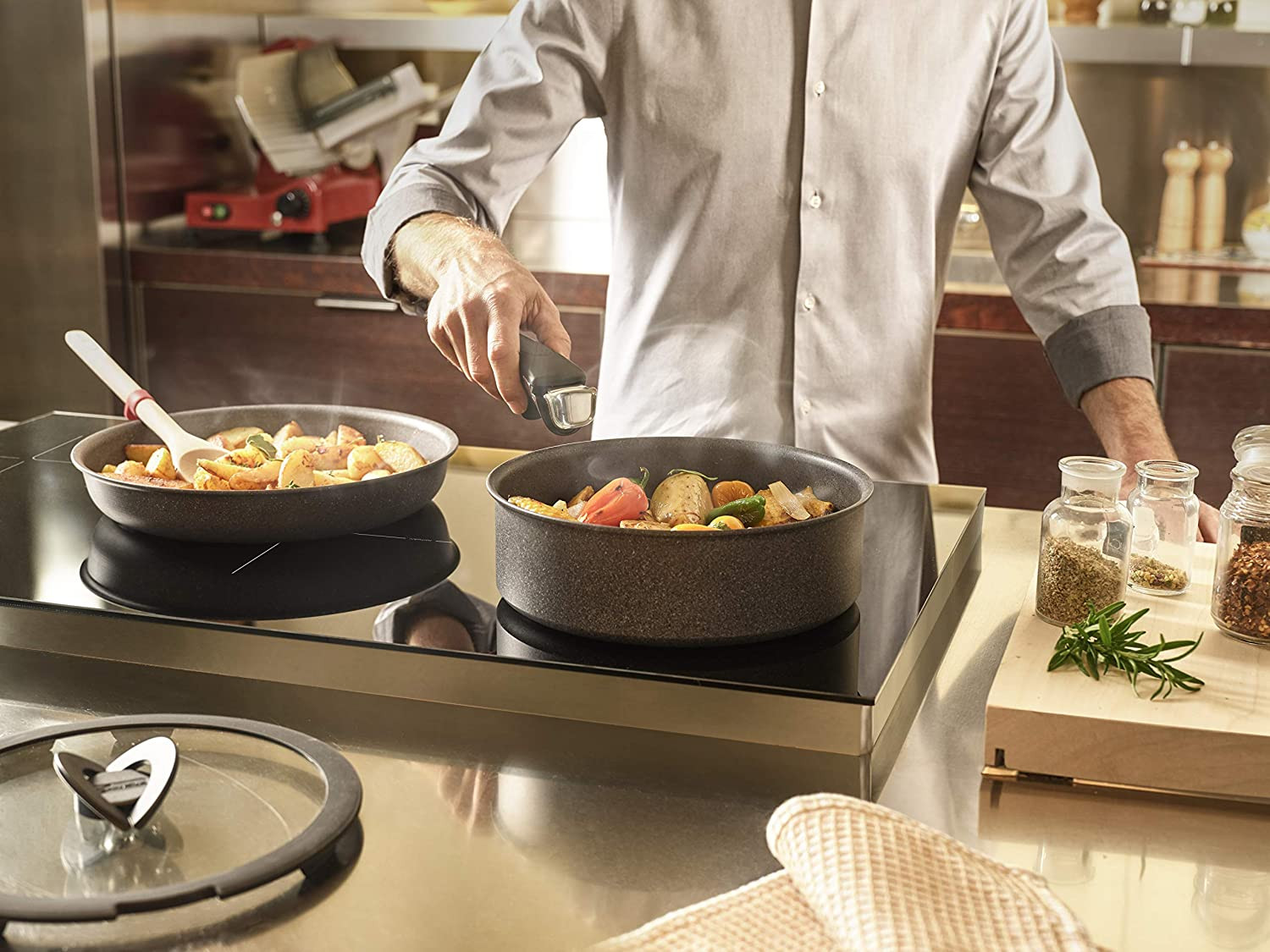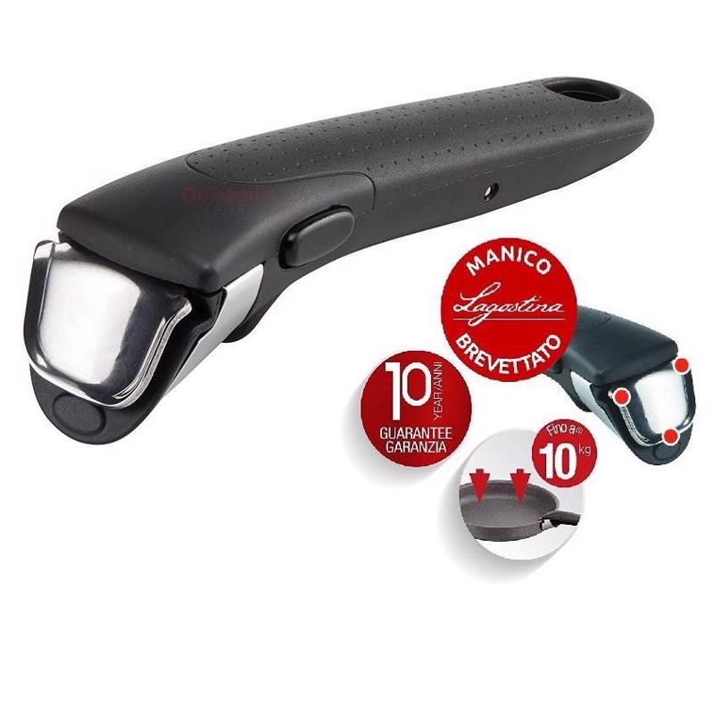 Ingenio È La Nuova Linea Antiaderente Ad Effetto Marmorizzato Firmata Lagostina. Elemento Distintivo Della Linea È Il Manico Amovibile, Compatibile Con Tutti I Corpi Pentola, Dotato Di Ben 3 Brevetti E Resistente Fino A 10Kg. Ingenio È Adatto Per Preparazioni Dal Piano Cottura, Al Forno, Al Frigo, È Ideale Per Servire Il Cibo Direttamente In Tavola Ed In Più È Salva Spazio Perchè Perfettamente Impilabile Il Manico Non È Adatto Alle Cotture In Forno. Utilizzo: Per Aprire, Premere Contemporaneamente I Due Pulsanti Sui Lati. Per Agganciare Il Manico Sull’Utensile, Premere La Leva Sotto Il Manico. Attenzione: Non Premere Mai I Pulsanti Per L’Apertura Del Manico Quando È Agganciato. Tecnologie: Il Manico Dei Prodotti Ingenio Supporta Fino Ad Un Peso Di 10 Kg. Grazie Ai Suoi Tre Brevetti Il Manico Dei Prodotti Ingenio Garantisce Un Fissaggio Ed Una Sicurezza Totali.