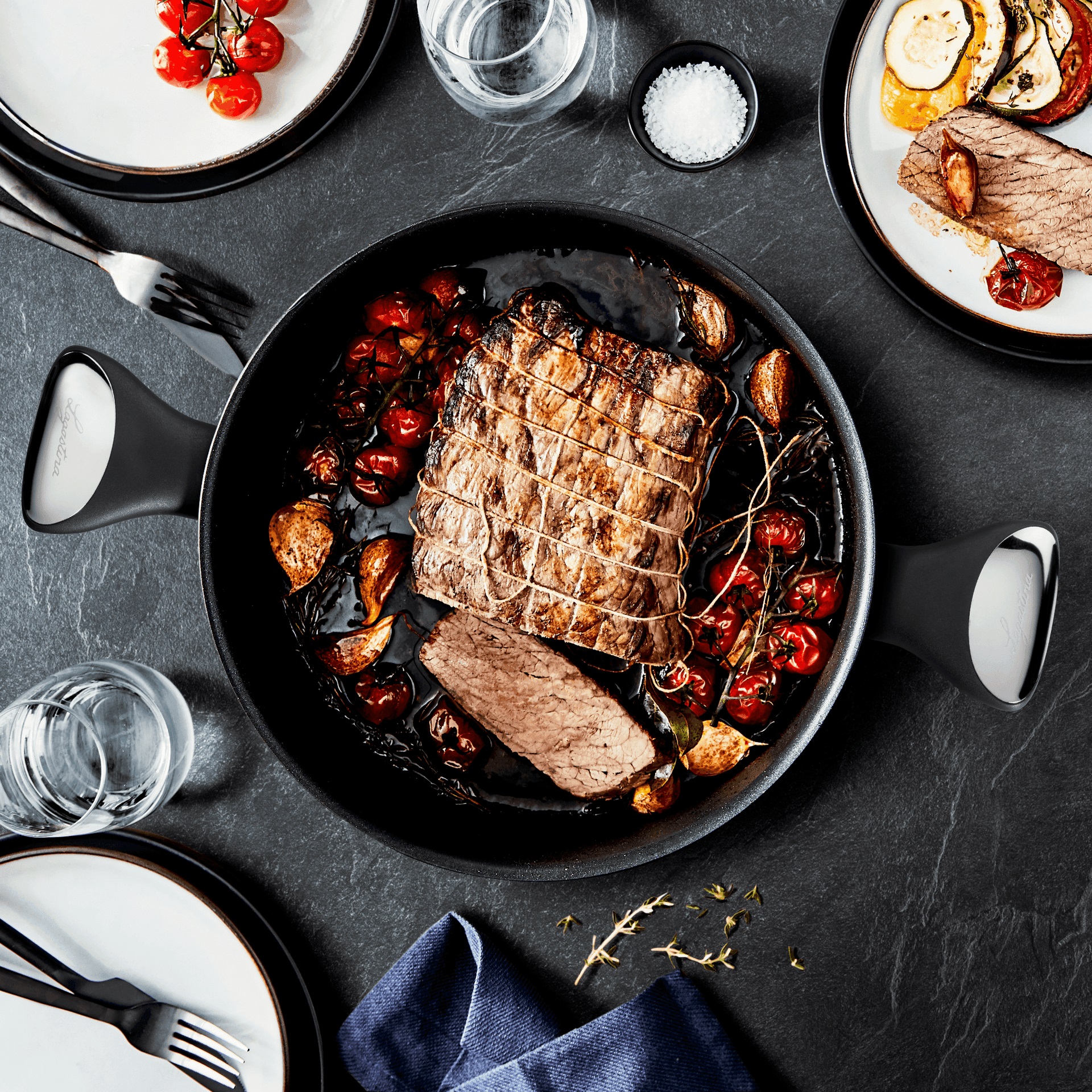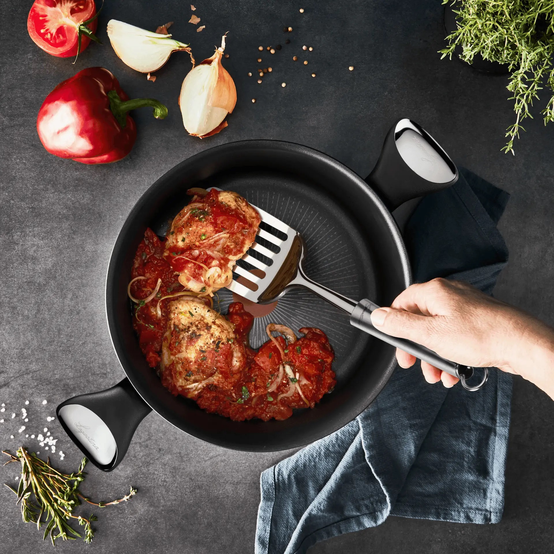 La padella Unlimited Lagostina offre quotidianamente resistenza ai graffi durante la cottura, con un robusto rivestimento antiaderente a 6 strati compatibile con gli utensili in metallo, che dura fino a sei volte più a lungo rispetto ai rivestimenti antiaderenti standard di Lagostina. La resistenza assoluta è abbinata a design e caratteristiche all’avanguardia, inclusa l’inconfondibile tecnologia Thermo-Signal con indicatore di temperatura e il fondo universale Thermo-Fusion, per risultati di cottura omogenei. Una padella straordinariamente efficace, per cotture di alto livello. Antiaderenza progettata per durare a lungo Resistente e duraturo Scopri padelle straordinariamente resistenti, con un rivestimento a 6 strati rinforzato con particelle in titanio, per prestazioni che durano a lungo nel tempo. Antigraffio e a prova di utensili in metallo Durevole e resistente, il nostro rivestimento in titanio antigraffio ad alte prestazioni è rinforzato con cristalli durissimi, per conservare le caratteristiche antiaderenti e antigraffio anche con utensili in metallo. Tecnologia Thermo-Signal™ Il Thermo-Signal™ diventa rosso scuro quando la padella ha raggiunto la temperatura giusta per iniziare a cucinare, garantendo ogni volta deliziosi piatti dal sapore impeccabile. Pratico da usare La struttura delle padelle con bordi alti consente di cucinare porzioni generose senza sporcare. Cottura rapida e uniforme Padella con tecnologia all’avanguardia a induzione Thermo-Fusion+ che garantisce un riscaldamento rapido e risultati di cottura uniformi a ogni utilizzo Compatibile con tutti i tipi di piano cottura, inclusi gas e induzione Compatibile con piani cottura a gas, elettrici, in ceramica e a induzione. Rivestimento antiaderente Come parte del nostro impegno per standard di sicurezza assoluti, tutti i nostri rivestimenti antiaderenti sono privi di PFOA, piombo e cadmio. I test sono condotti da laboratori esterni indipendenti con controlli più rigidi rispetto a quelli richiesti dalle normative vigenti*. *controlli più rigidi rispetto a quelli richiesti dalle normative vigenti. Privo di PFOA, in conformità alle normative applicabili. Privo di piombo e cadmio (no Pb no Cd): nessuna aggiunta intenzionale di piombo e cadmio nei rivestimenti, la loro presenza non è rilevata attraverso i test condotti da laboratori esterni