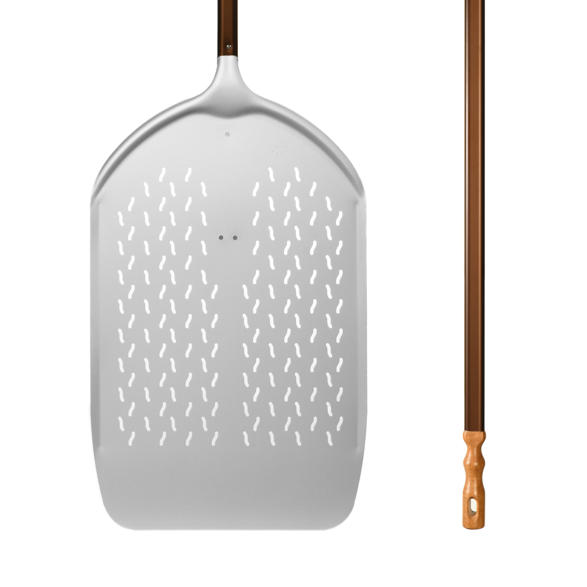 Pala Per Infornare Pizza Al Metro Rinforzata Cm. 40X80 ,Forata Lega Alluminio – H 170Cm Pala Per Infornare Pizza Al Metro, In Lega Di Alluminio. I Micropori Sulla Superficie Aumentano La Scorrevolezza Della Pasta. Pala Rinforzata Con Un Sostegno In Alluminio Sul Retro Della Pala.