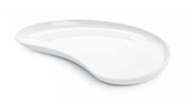 M.P.S Porcellane Di Saronno. Set 6 piatto piano 22x16x2 cm, in porcellana bianca, forma particolare