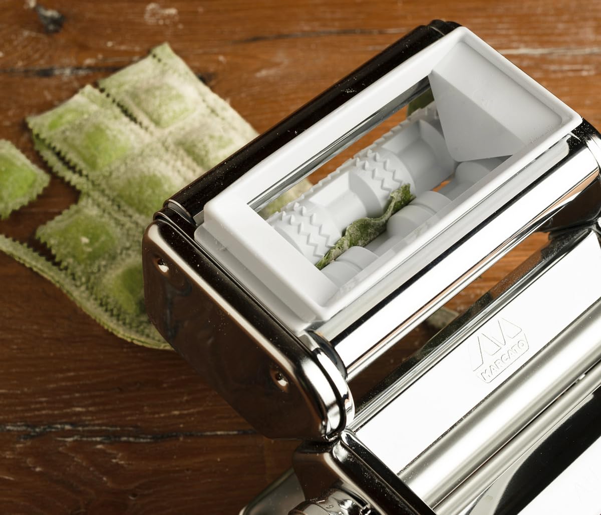 ACCESSORIO PER MACCHINA PER LA PASTA: Compatibile esclusivamente con Atlas 150, questo accessorio arrichisce l’esperienza culinaria offrendo la possibilità di preparare pietanze che prevedono l’utilizzo di Raviolini. I suoi rulli sono realizzati con una superficie impercettibilmente ruvida che renderà la pasta porosa per esaltarne il gusto e legare facilmente ai condimenti. ACCESSORIO RAVIOLIni: I Raviolini sono una pasta ripiena di forma quadrata e larghezza 30 mm. Re della pasta ripiena, il Raviolo è l’ideale per chi adora creare nuovi abbinamenti tra ingredienti e stupire con primi piatti gustosi e incredibilmente buoni. Lo spessore della sfoglia consigliato è alla posizione 6 del regolatore della macchina per pasta. MONTAGGIO FACILE: L’accessorio si aggancia alla macchina per la pasta inserendolo nelle apposite guide per gli accessori da taglio. Una volta montato sarà perfettamente stabile. Per Motivi di sicurezza l’accessorio per i Ravioli non è compatibile con il motore Atlasmotor. MADE IN ITALY: Marcato produce da sempre in Italia, avvalendosi di processi produttivi sostenibili, nel rispetto dell’ambiente e della salute. La ricerca in costante evoluzione, l’utilizzo di una tecnologia all’avanguardia, i materiali innovativi e l’attenzione per i dettagli, hanno dato vita ad una gamma di prodotti versatili, funzionali e di altissima qualità.
