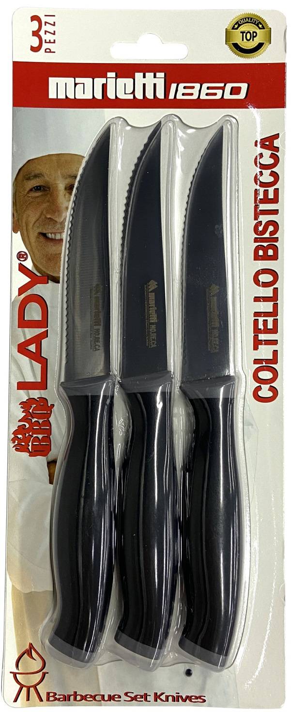 Marietti lady BBQ, set 3 coltelli bistecca, lama punta seghettata
