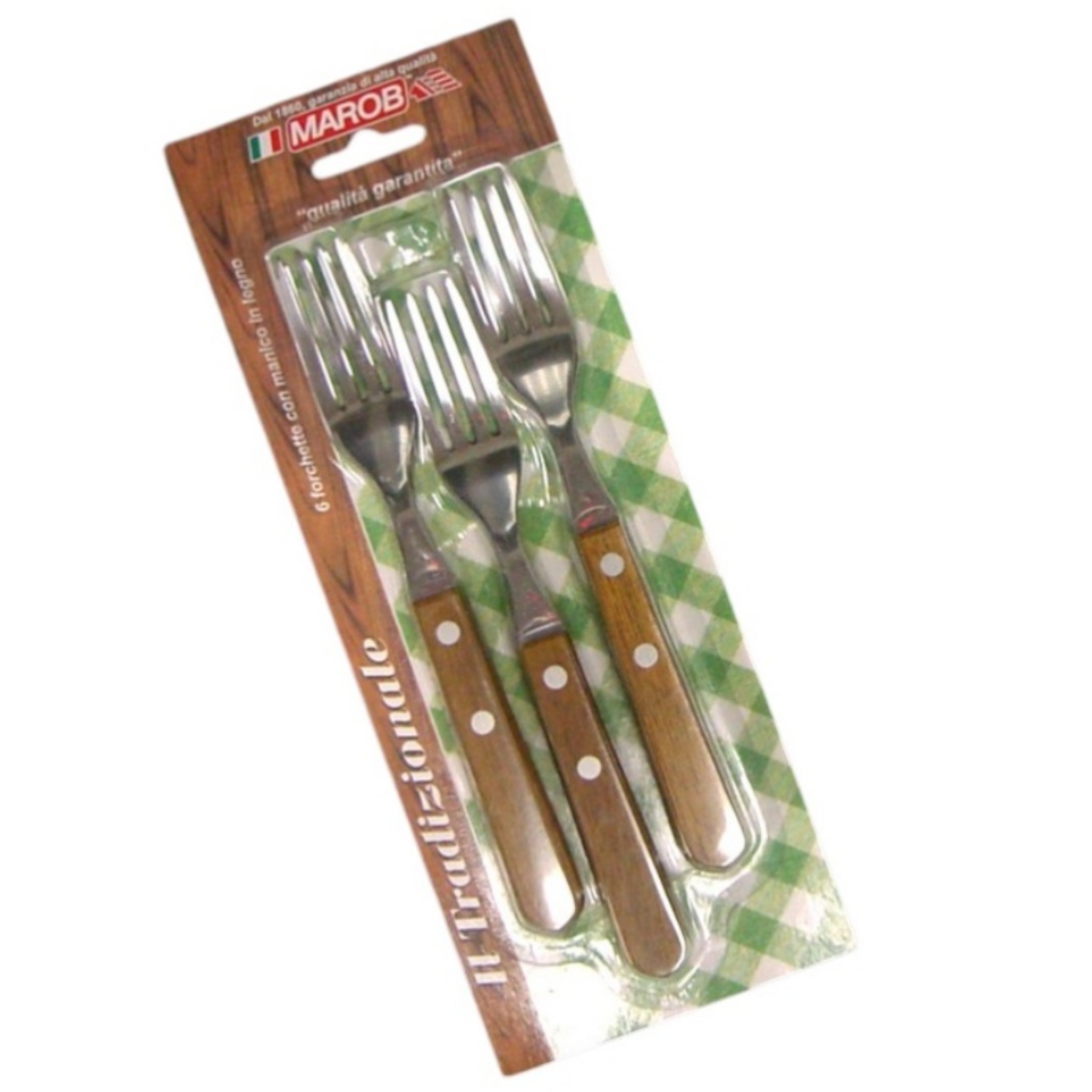 Il set di 6 forchette Marietti con manico in legno è un classico intramontabile che porta in tavola il calore delle vecchie cucine italiane. Il contrasto tra l’acciaio inox lucido e il legno naturale crea un’estetica calda e autentica. Ogni forchetta è un pezzo unico, perché le venature del legno cambiano da manico a manico, rendendo il set vivo e particolare. La struttura è quella tipica della tradizione: l’acciaio attraversa tutto il manico e viene bloccato dai rivetti a vista, una tecnica che assicura che la forchetta non traballi mai, nemmeno dopo anni di cene e pranzi abbondanti. A differenza delle posate moderne, interamente in metallo, queste hanno un’anima artigianale. Il manico in legno non è solo bello da vedere, ma è anche termicamente isolante: non risulta mai freddo al tatto e offre una stabilità che la plastica non può eguagliare.