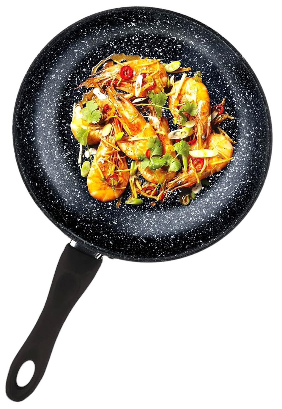 Rivestimento Antiaderente Triplostrato In Pietra Eterna, Non Contiene Pfoa, 100% Antiaderente Adatto Alla Cucina Senza Grassi, Antigraffio Lavabile In Lavastoviglie, Triplo Fondo Ad Elevato Spessore Adatto A Tutte Le Fonti Di Calore Inclusa L’Induzione Manico Ergonomico Antiscivolo