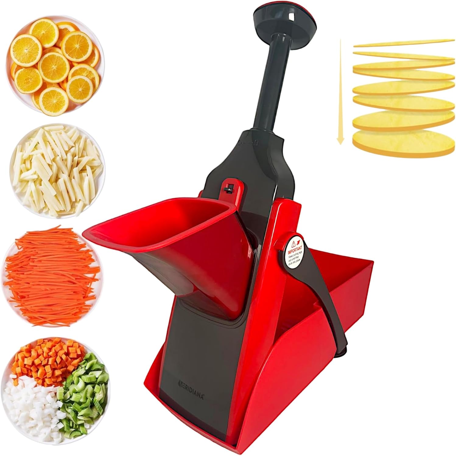 Tanti TAGLI: la affettatrice manuale ha una manopola con 8 impostazioni per creare frutta e verdura affettate con spessore tra 0,5 mm e 8 mm. Inoltre tagliaverdure manuale dispone di lame regolabili