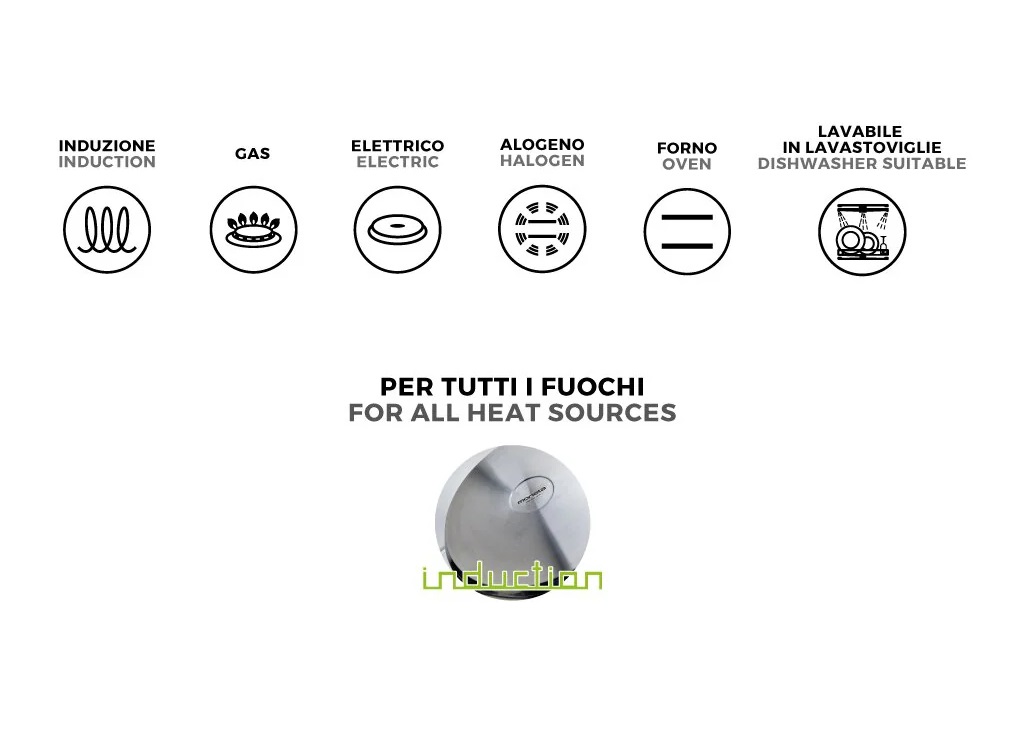 PENTOLA 24 CM ACCORDO INOX MONETA Pentola Moneta Accordo Inox Ø24 cm con coperchio è la soluzione ideale per chi desidera cucinare in modo pratico, resistente e sostenibile. Realizzata in acciaio inossidabile di alta qualità, garantisce una lunga durata e prestazioni eccellenti, perfette per ogni tipo di preparazione. Grazie al fondo incapsulato a tre strati, assicura una distribuzione uniforme del calore, permettendo una cottura efficiente e omogenea. La pentola è adatta a tutti i piani cottura, compresa l’induzione, per la massima compatibilità con ogni cucina. Le maniglie ergonomiche in acciaio offrono una presa sicura e confortevole, mentre il coperchio in vetro temperato con bordo in acciaio inox consente di monitorare la cottura senza sollevare il coperchio, mantenendo il calore e i sapori all’interno. Caratteristiche principali Materiale resistente – Acciaio inox di alta qualità per una lunga durata e un’elevata resistenza a graffi e corrosione Compatibilità totale – Adatta a tutti i piani cottura, inclusa l’induzione ⚡ Distribuzione uniforme del calore – Fondo incapsulato a 3 strati per una cottura ottimale Design funzionale – Maniglie ergonomiche in acciaio per una presa sicura e comoda Coperchio in vetro temperato – Permette di controllare la cottura senza disperdere calore Contenuto della confezione ✔️ 1x Pentola Moneta Accordo Inox Ø24 cm ✔️ 1x Coperchio in vetro temperato con bordo in acciaio inox Una pentola elegante e resistente, perfetta per l’uso quotidiano e ideale per cucinare con praticità e stile! Corpo in acciaio inox ad alto spessore con strato interno in alluminio per una migliore distribuzione del calore sullo strumento di cottura. Fondo Full Induction: Il fondo interamente in acciaio inox ne consente la massima efficienza su piani ad induzione, minimizzando i consumi. Per cotture uniformi e veloci senza sprechi! Fondo spazzolato