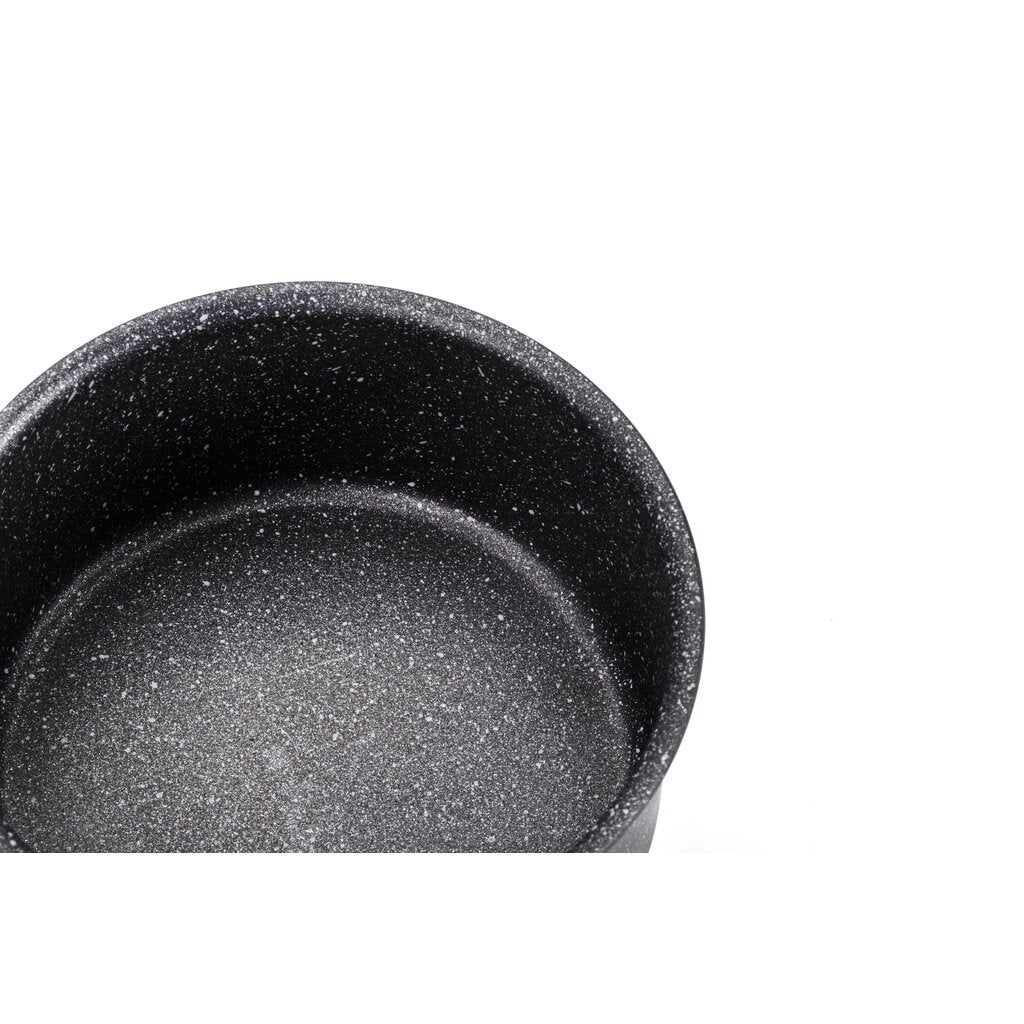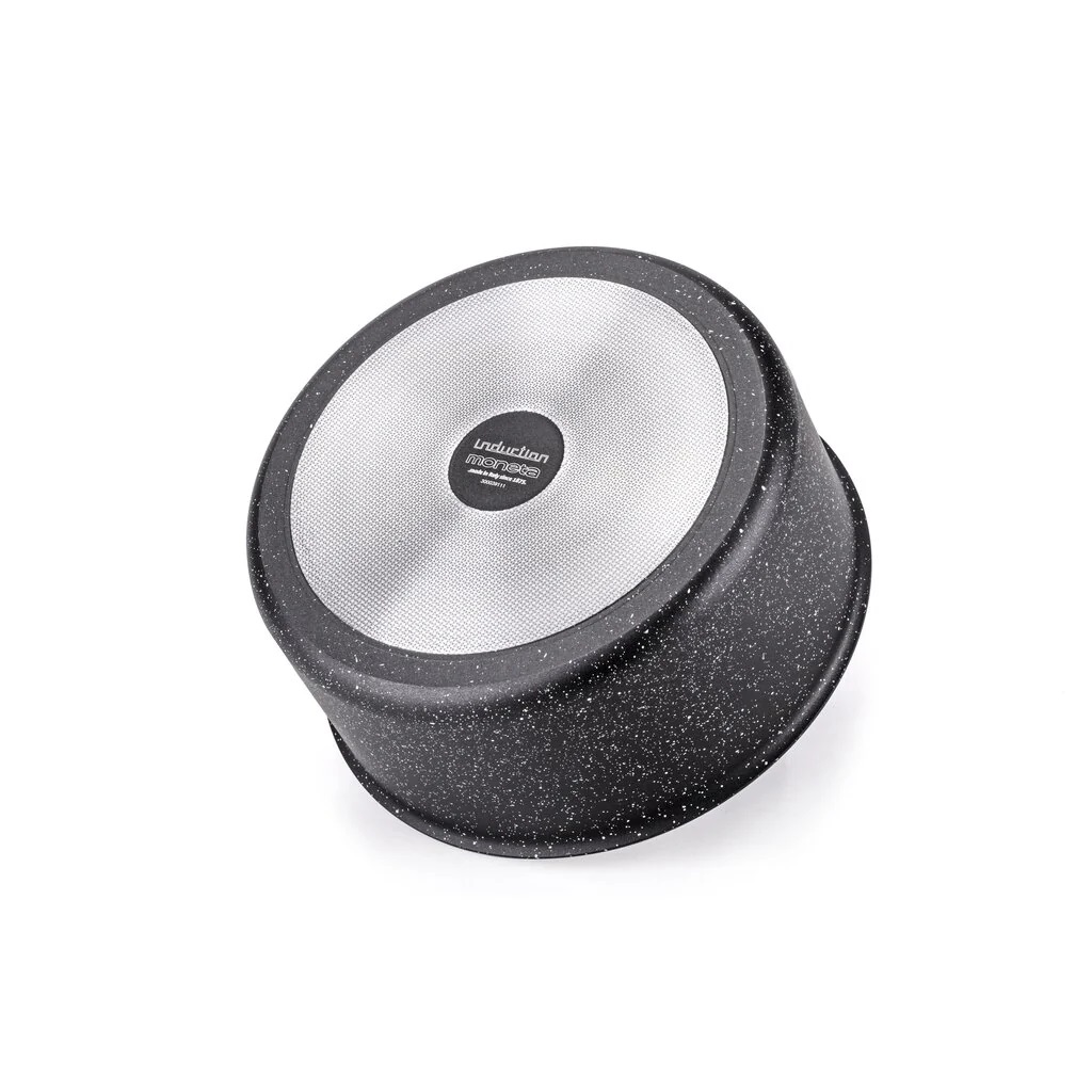Corpo in Alluminio 100% Riciclato. Per la realizzazione vengono impiegate solo leghe adatte al contatto con gli alimenti. Le leghe autorizzate non contengono Arsenico, Piombo, Nichel o Cadmio. Artech Stone Ultra: ultimo nato tra i rivestimenti Moneta, per una antiaderenza superiore. Artech Stone Ultra è il rivestimento effetto pietra dalla superficie ruvida per chi desidera una pentola che non teme le maniere forti. Ottimo per cotture veloci, uniformi e senza grassi, molto resistente ai graffi e alle abrasioni. Artech Stone Ultra si avvale di un’antiaderenza a triplo strato. No PFOA, No Nichel, No Bisfenolo A. Rivestimento esterno nero effetto pietra in PTFE Fondo ad Induzione Net Induction: si cucina in minor tempo consumando meno energia. La speciale maglia di acciaio tessuta sfrutta ottimamente i piani a induzione e tutti i tipi di piano cottura. La maggiore velocità di riscaldamento, l’ottima trasmissione del calore e la planarità del fondo migliorano l’efficienza e le performance. Net Induction è adatto a tutti i piani di cottura. (MANICO NON INCLUSO) Fondo spazzolato