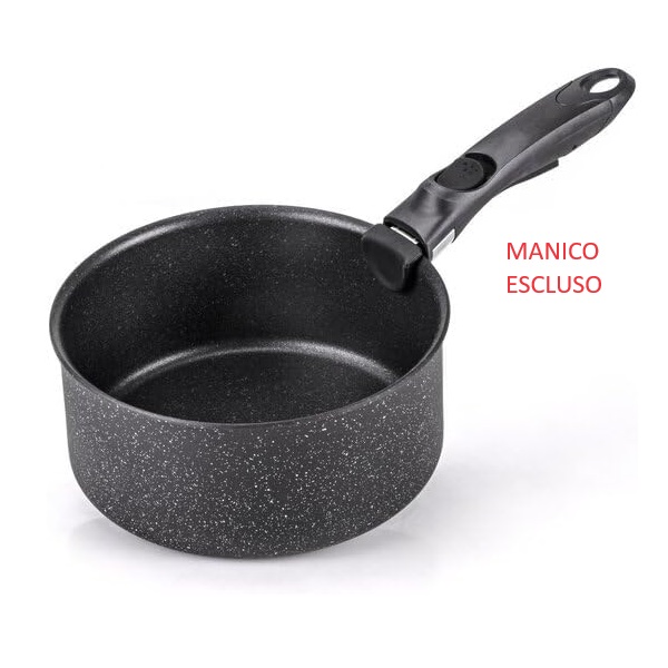 Corpo in Alluminio 100% Riciclato. Per la realizzazione vengono impiegate solo leghe adatte al contatto con gli alimenti. Le leghe autorizzate non contengono Arsenico, Piombo, Nichel o Cadmio. Artech Stone Ultra: ultimo nato tra i rivestimenti Moneta, per una antiaderenza superiore. Artech Stone Ultra è il rivestimento effetto pietra dalla superficie ruvida per chi desidera una pentola che non teme le maniere forti. Ottimo per cotture veloci, uniformi e senza grassi, molto resistente ai graffi e alle abrasioni. Artech Stone Ultra si avvale di un’antiaderenza a triplo strato. No PFOA, No Nichel, No Bisfenolo A. Rivestimento esterno nero effetto pietra in PTFE Fondo ad Induzione Net Induction: si cucina in minor tempo consumando meno energia. La speciale maglia di acciaio tessuta sfrutta ottimamente i piani a induzione e tutti i tipi di piano cottura. La maggiore velocità di riscaldamento, l’ottima trasmissione del calore e la planarità del fondo migliorano l’efficienza e le performance. Net Induction è adatto a tutti i piani di cottura. (MANICO NON INCLUSO) Fondo spazzolato