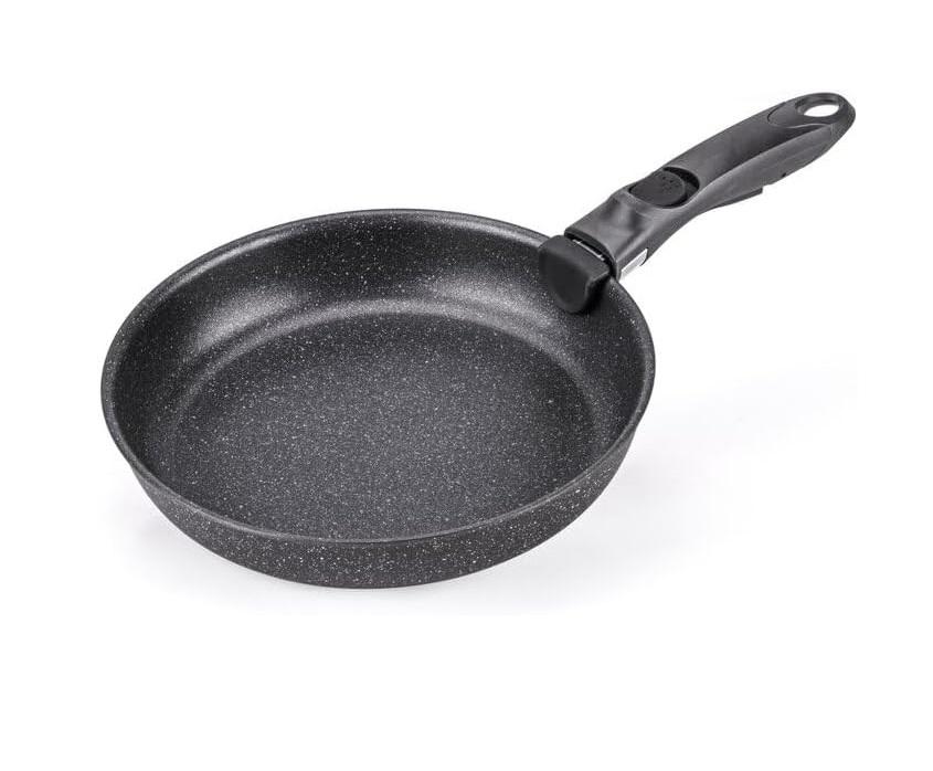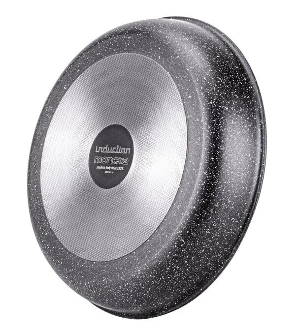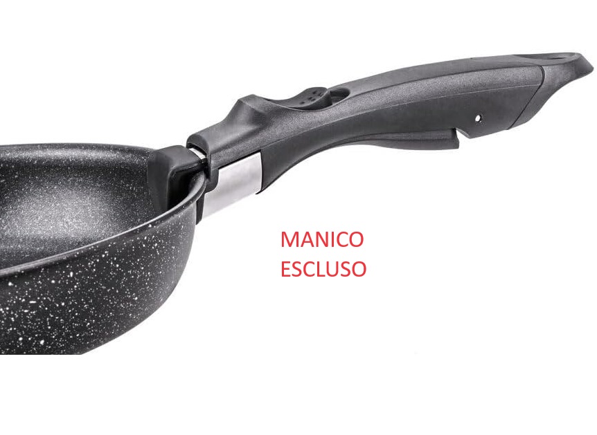 Corpo in alluminio con rivestimento antiaderente effetto pietra. Compatibile con manico removibile minispace Moneta (MANICO NON INCLUSO). Adatto a tutti i piani cottura, incluso l’induzione. Il corpo pentola può essere utilizzato anche in forno (senza manico removibile).