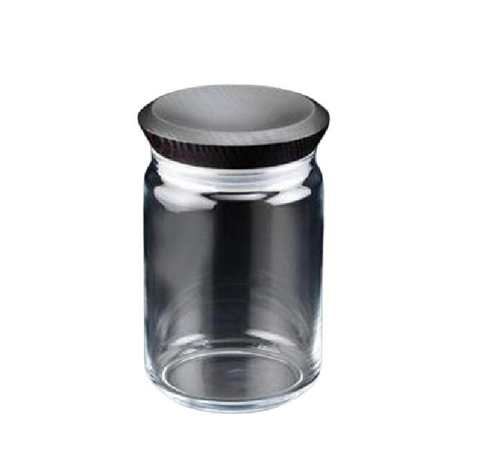 Morinox Swing, barattolo 17 cm, in vetro trasparente con tappo in legno nero