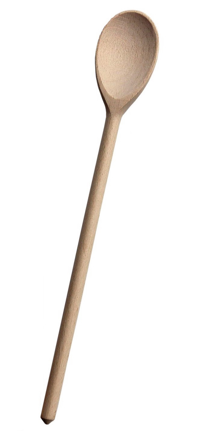 Cucchiaio tornito realizzato in legno di faggio non trattato con incavo nella parte superiore del manico e pala leggermente curva. Disponibili in diverse misure fino a 80 cm. Lavabile in lavastoviglie.