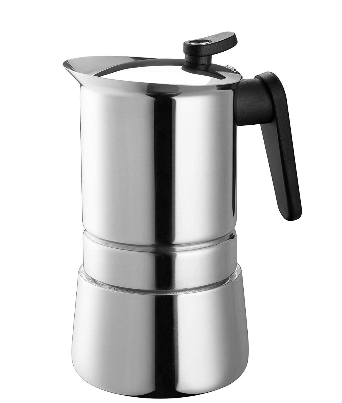 Pedrini steel moka, caffettiera 6 tz in acciaio adatta ad induzione