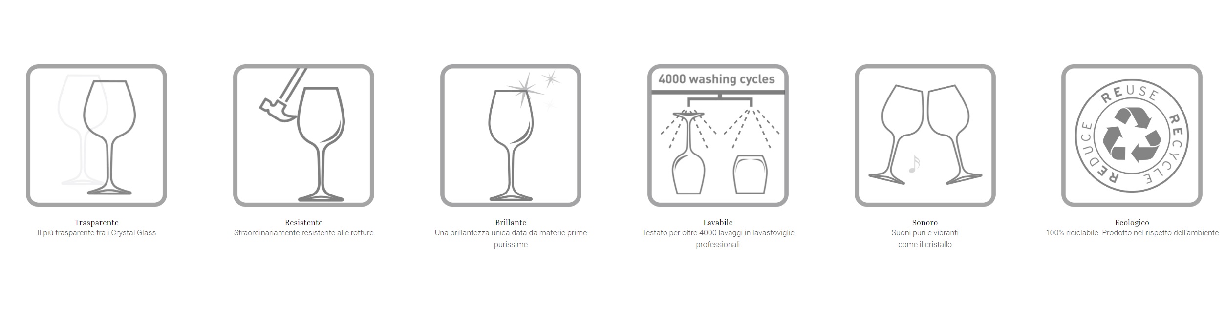 E’ Il Top Di Gamma Delle Collezioni Rcr, Studiata Per Un Arredo Tavola Di Alto Livello. Spessori Sottili Resi Molto Resistenti Agli Urti Dall’Alta Densità Del Cristallo Ecologico. Il Disegno Della Coppa Nell’Angolo Di Massima Curvatura Indica Il Giusto Livello Del Vino Da Versare, Mentre La Parte Bassa Conica Del Calice Permette Di Apprezzarne Le Gradazioni Di Colore Nel Suo Massimo Splendore.