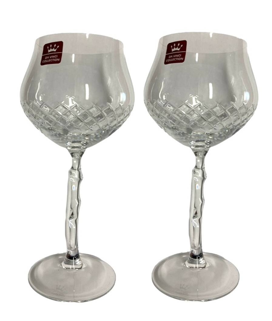 Calici In Finissimo Cristallo ,24% Lavorato Con Gocce Che Avvolgono Il Calice , Piede Effetto Canna Di Bamboo Il Prezzo Si Intende Per La Confezione Da 2 Calici