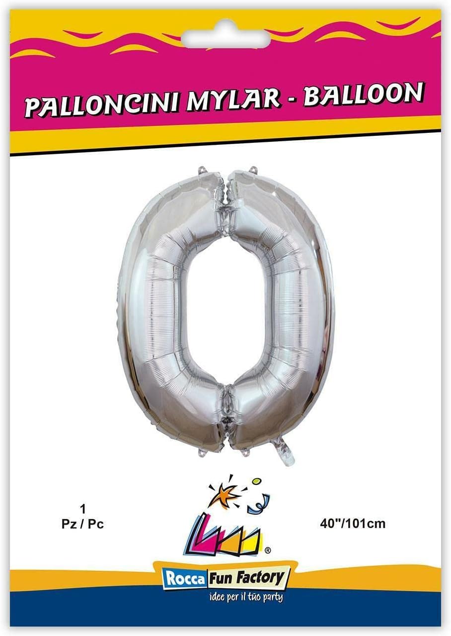 Rocca fun factory, palloncino numero 0 argento mega 40 – 101 cm 1 pz