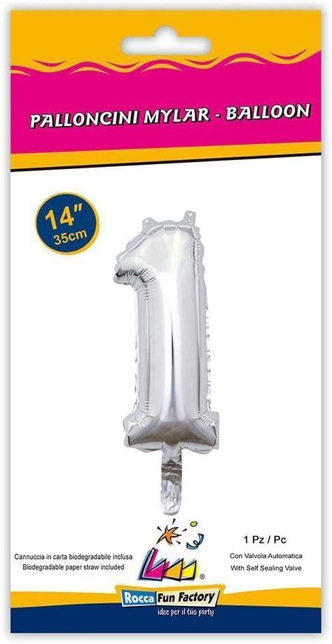 Rocca fun factory, palloncino numero 1 argento minishipe 14 – 35 cm 1 pz