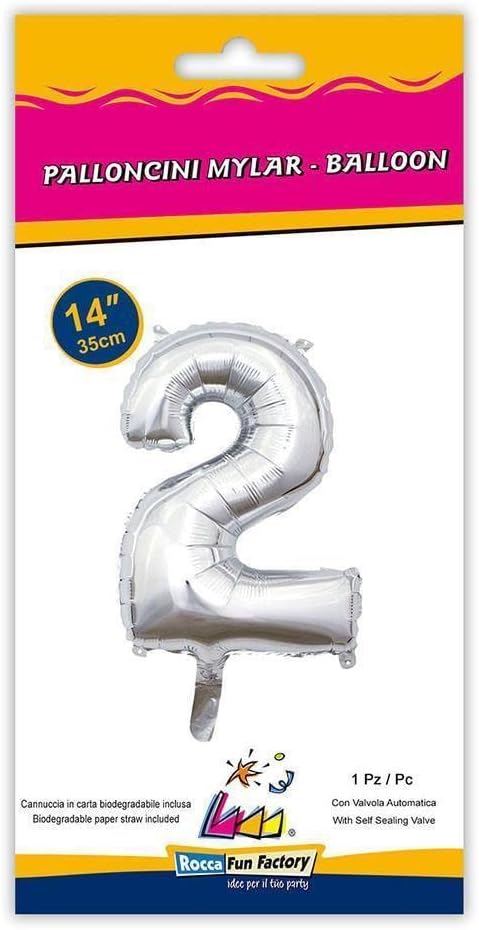 Rocca fun factory, palloncino numero 2 argento minishipe 14 – 35 cm 1 pz